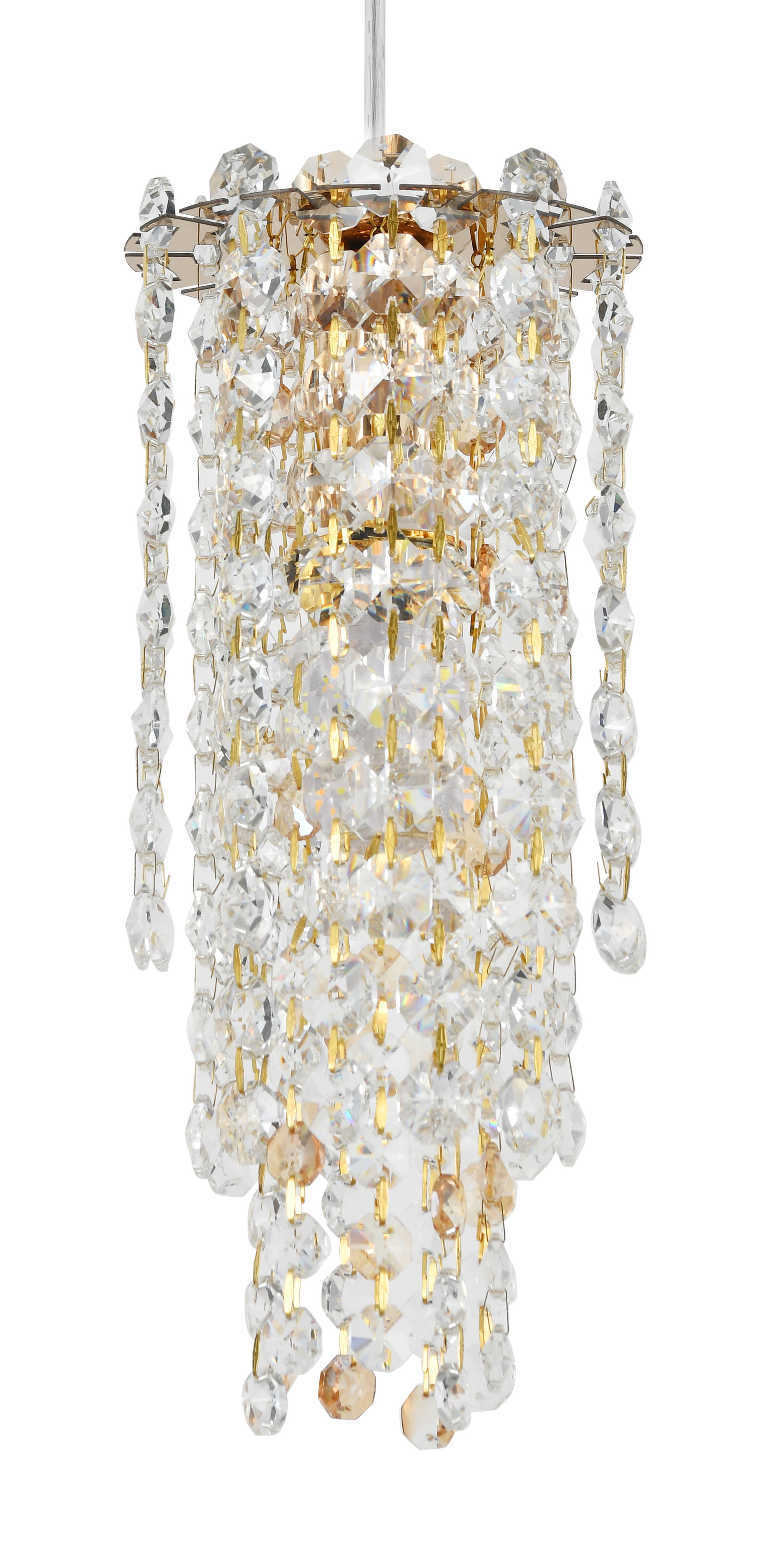 Светильник подвесной-настенный коллекции Rain of Crystal выполнен из металла, гальванизированного в цвет золота, и декорирован хрусталем высшей категории прозрачного и янтарного цветов. Благодаря специальному креплению, входящему в комплект, светильник данной коллекции имеет возможность установки как на потолок, так и на стену. Премиальное качество и неповторимый дизайн светильника идеально подойдут как в классические, так и современные интерьеры. Из данной коллекции светильников можно сделать индивидуальный заказ любого цвета и размера.
