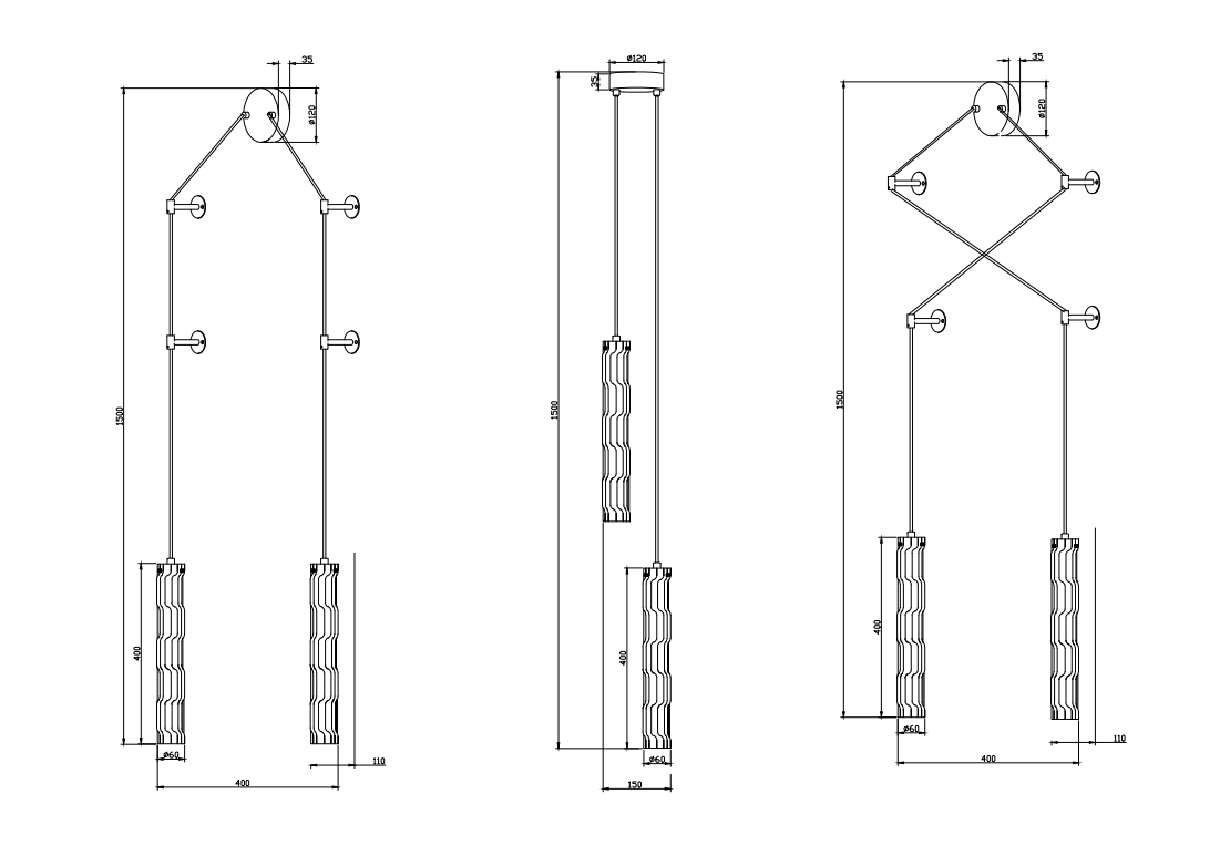 - Высота светильника, мм: 530-1500
