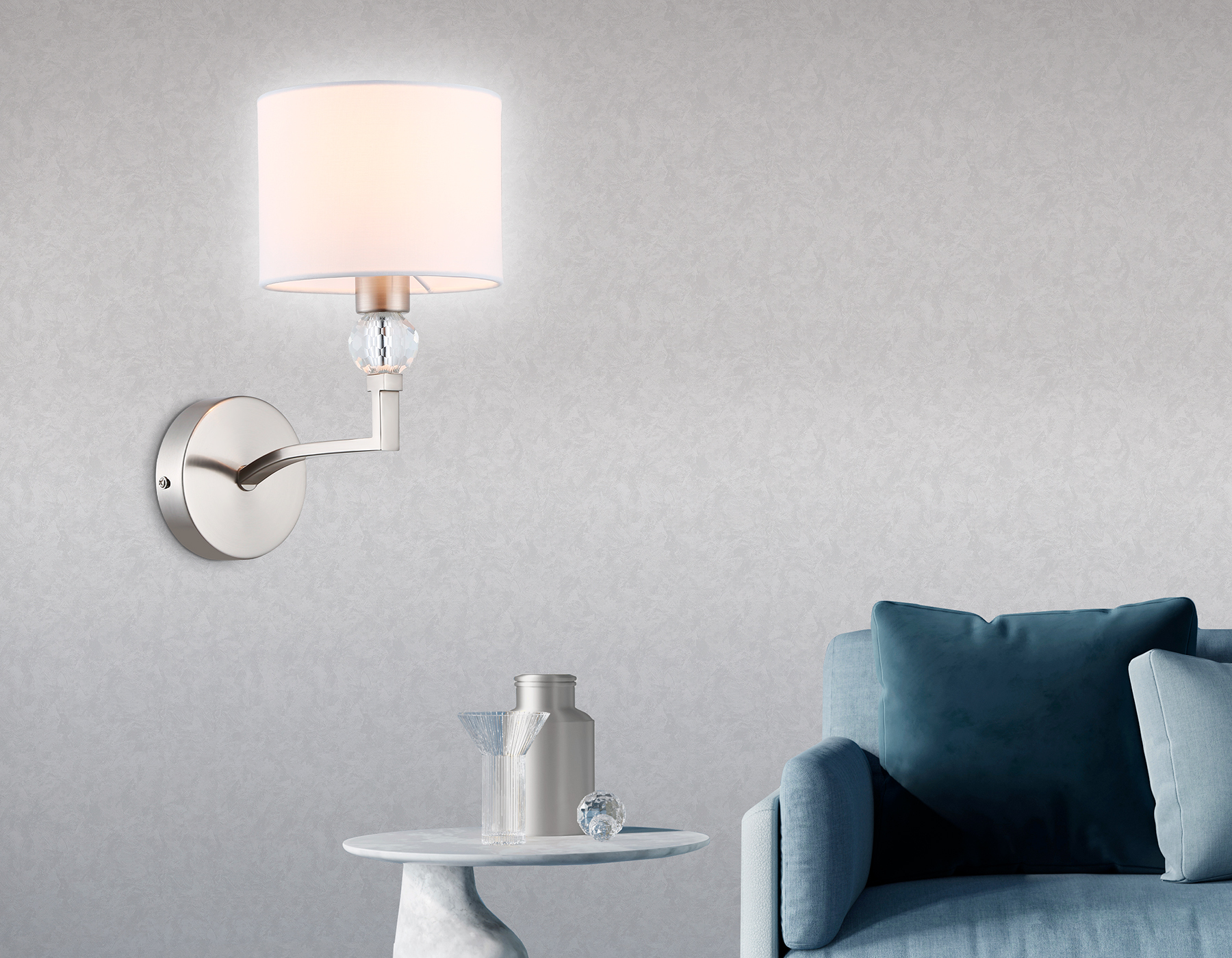 Настенный светильник с абажуром и хрусталем 1*Е14 LH71125 SN/WH никель/белый High Light Classic Ambrella