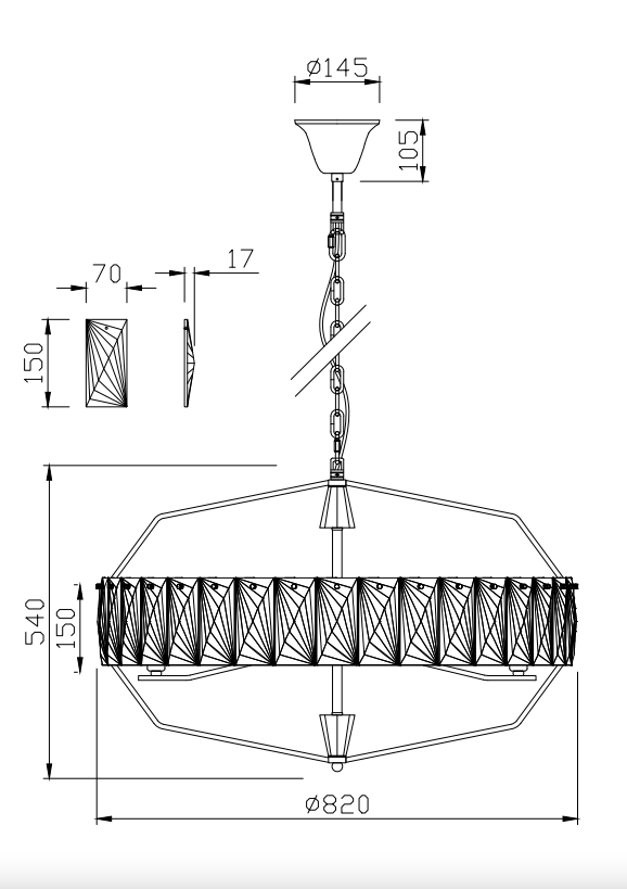 - Диаметр светильника, мм: 820