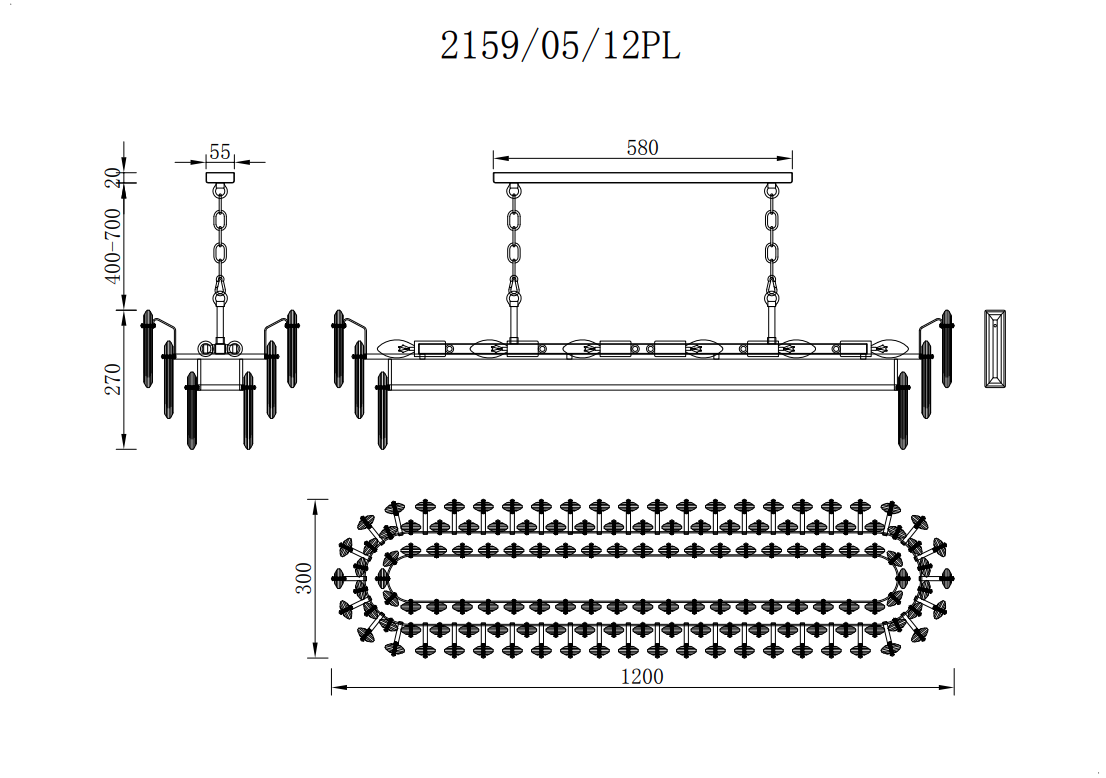 - Ширина светильника, мм: 300