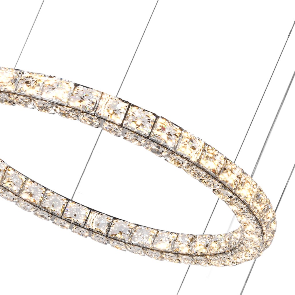 Подвесная люстра коллекции UltraTon выполнена из металла, гальванизированного в цвет хром, и декорирована хрусталем высшей категории К9. В комплекте - пульт дистанционного управления 2.4G и высококачественный драйвер европейского стандарта TÜV, обеспечивающий переключение трех режимов световой температуры и диммирование. Люстра изготовлена с учетом современных тенденций минимализма: её толщина составляет 4 сантиметра. Высокое качество и уникальный дизайн идеально подойдут для классических и дизайнерских интерьеров.
