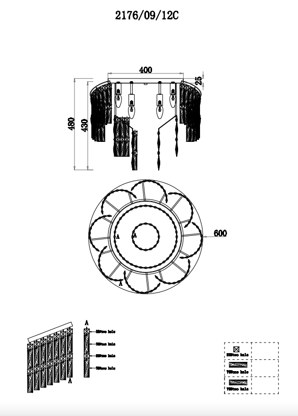 - Диаметр светильника, мм: 600
