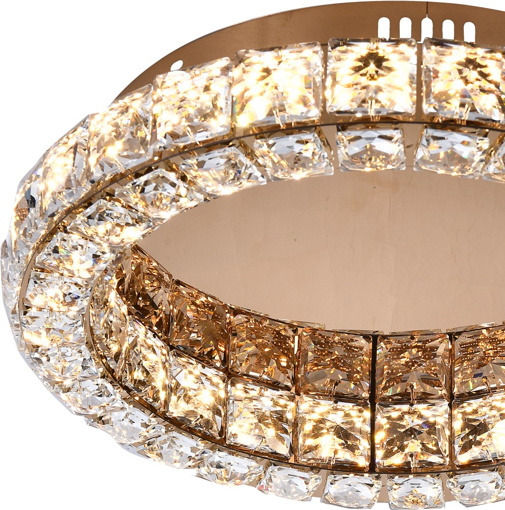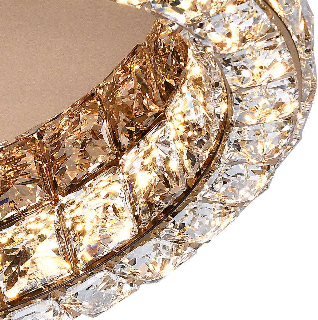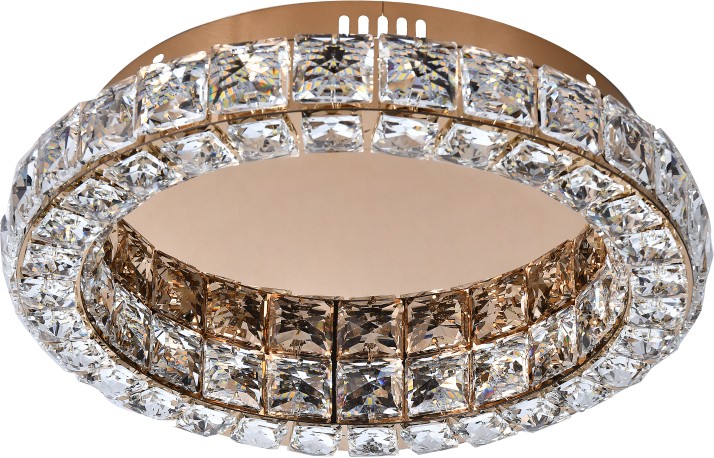 Потолочная люстра коллекции UltraTon выполнена из металла, гальванизированного в цвет золото, и декорирована хрусталем высшей категории К9. В комплекте - пульт дистанционного управления 2.4G и высококачественный драйвер европейского стандарта TÜV, обеспечивающий переключение трех режимов световой температуры и диммирование. Люстра изготовлена с учетом современных тенденций минимализма: её толщина составляет 4 сантиметра. Высокое качество и уникальный дизайн идеально подойдут для классических и дизайнерских интерьеров.