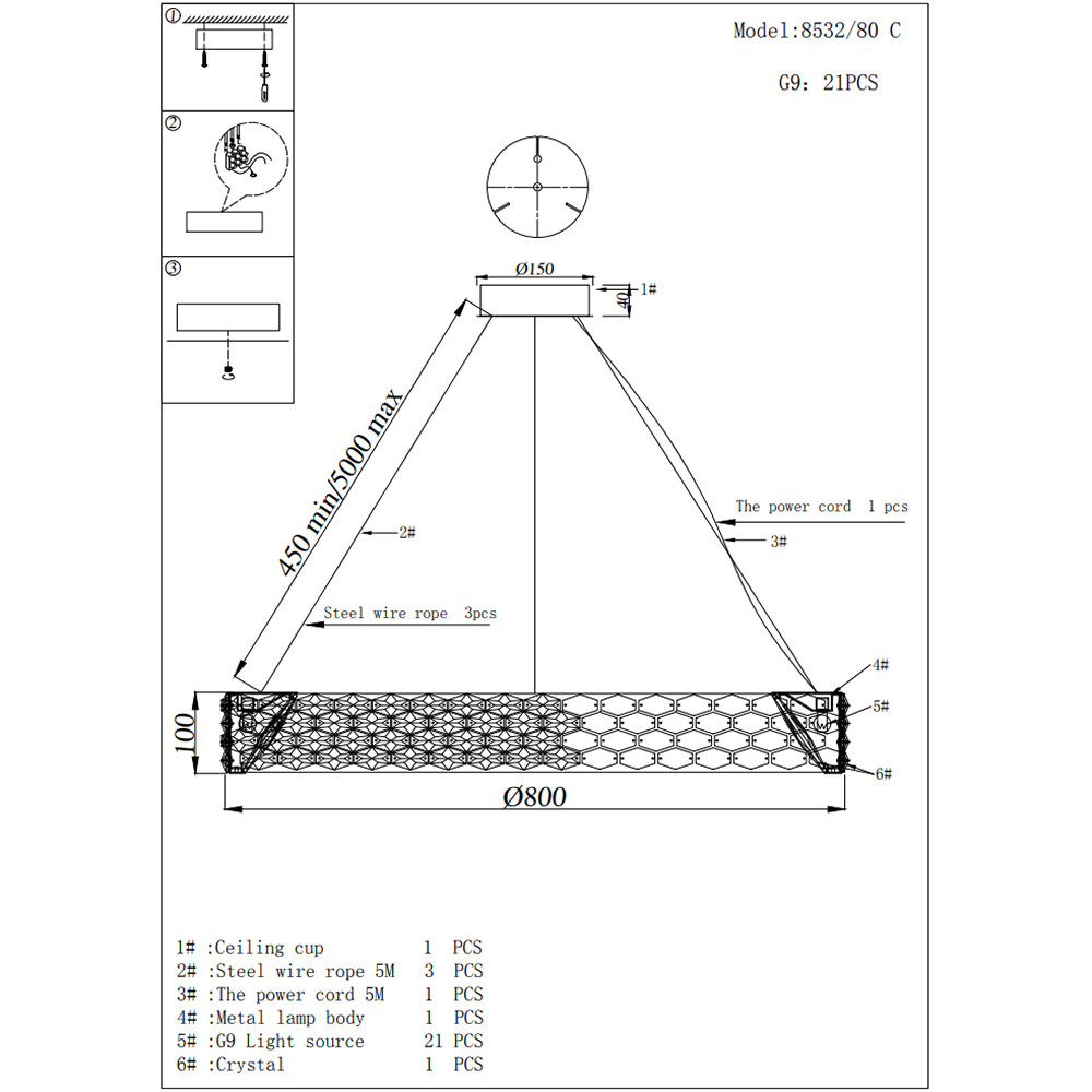 Высота цепи/троса, см: 500
