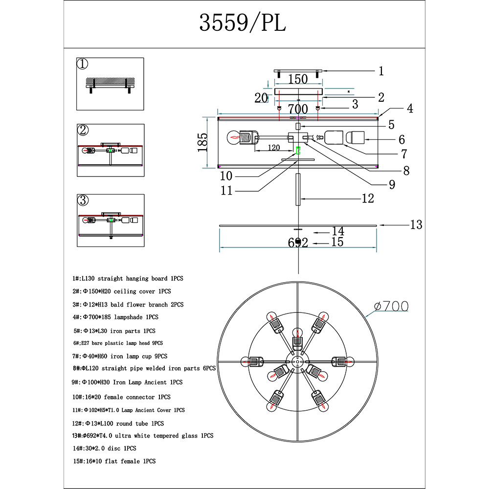 Количество источников света: 9