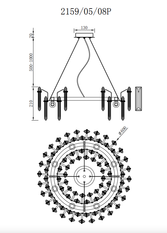 - Диаметр светильника, мм: 600