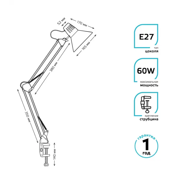 - Мощность лампы: 60 Вт
