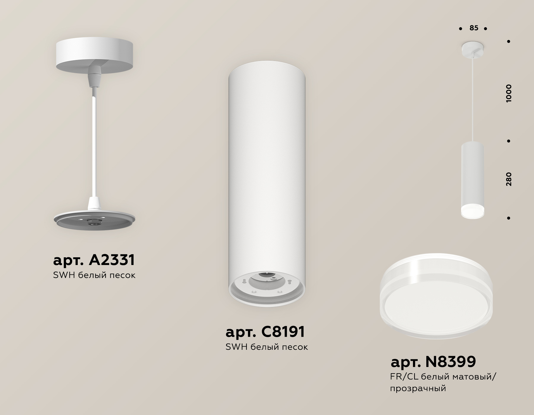 Комплектация:крепеж подвесной D85, корпус накладной D85, насадка передняя D85