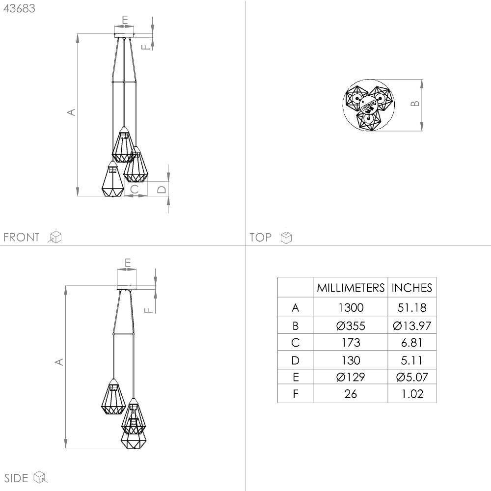 Подвесной светильник 3*E27 43683 латунь матовая TARBES Eglo