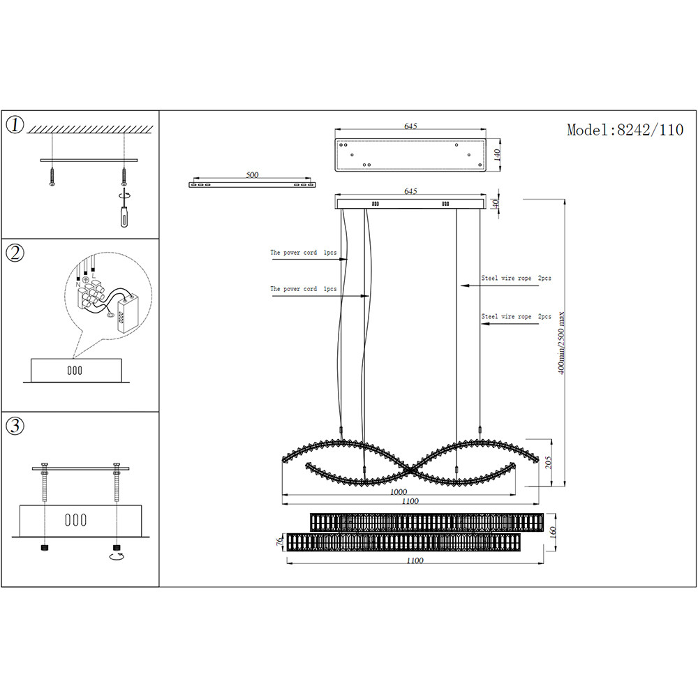 Высота с цепью/тросом, см: 250