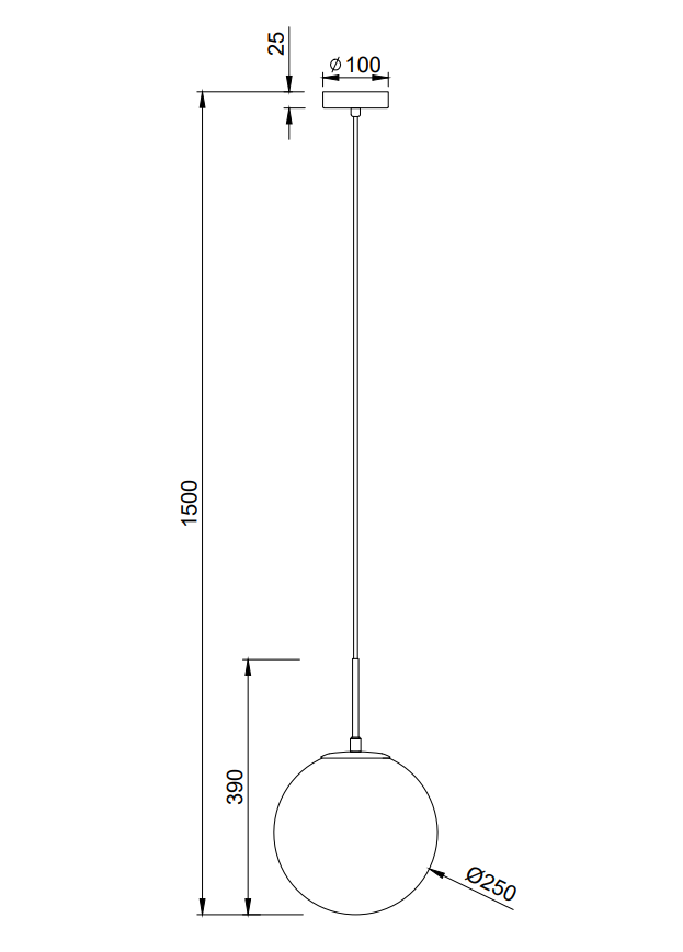 - Высота светильника, мм: 1500