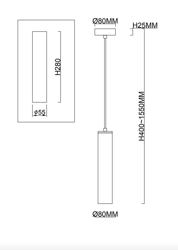 - Высота светильника, мм: 1550