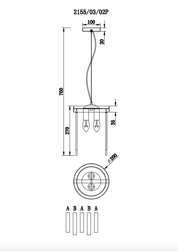 - Диаметр светильника, мм: 200