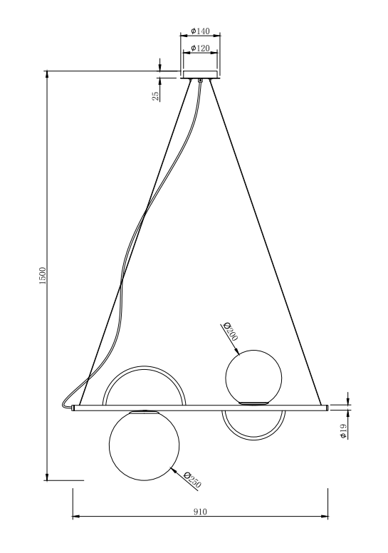 - Ширина светильника, мм: 250