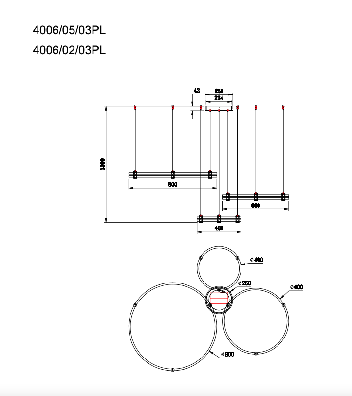 - Диаметр светильника, мм: 800
