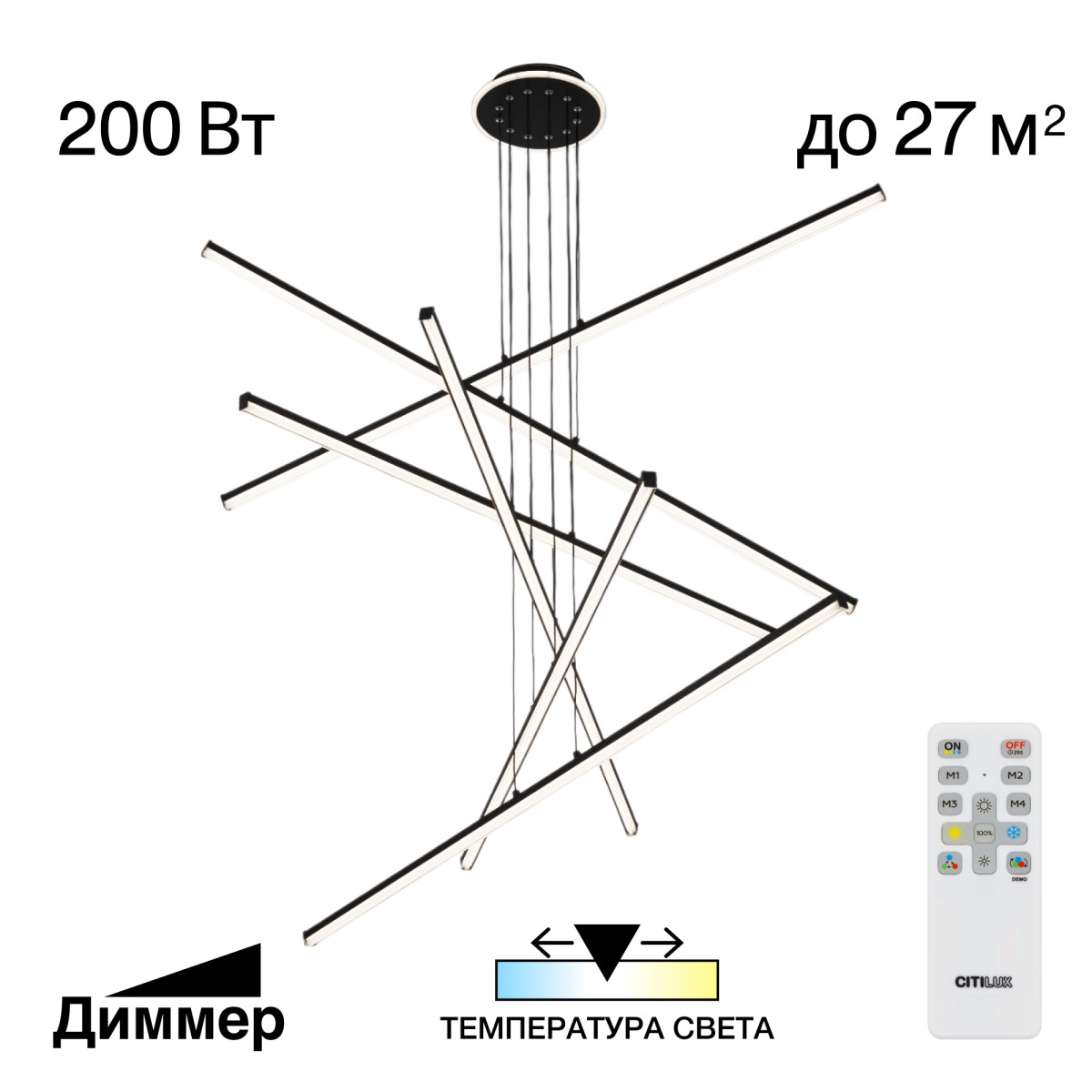 Мощность изделия 200Вт, световой поток 18000Лм, индекс цветопередачи CRI>85. С помощью пульта дистанционного управления можно плавно регулировать яркость от 10% до 100%, менять цветовую температуру в диапазоне 3000K - 5500K, что позволяет настроить любые оттенки теплого, нейтрального или холодного света. Есть функция таймера и 4 настраиваемых режима памяти для комфортного использования.