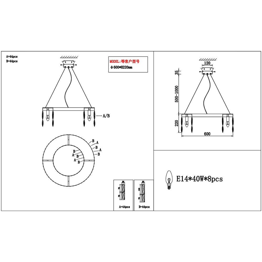 | Высота люстры без цепи | 22 см |