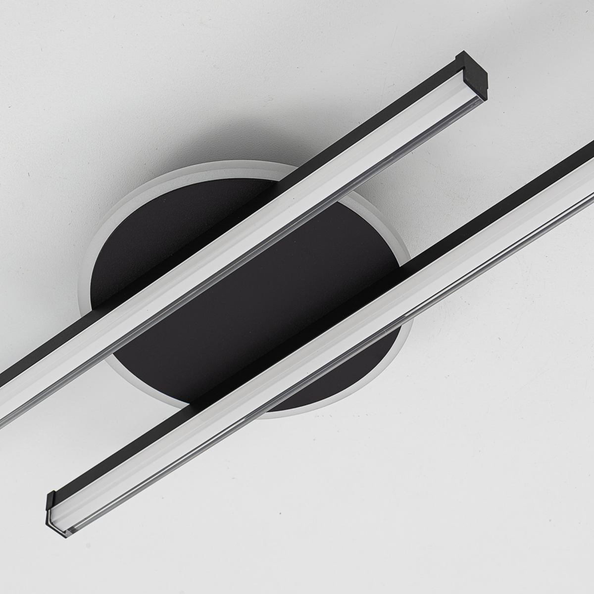 Корпус люстры — из металлического сплава, окрашенного белой краской. Глянцевый рассеиватель — из специализированного оптического полимера. У люстры есть изящная подсветка потолка.