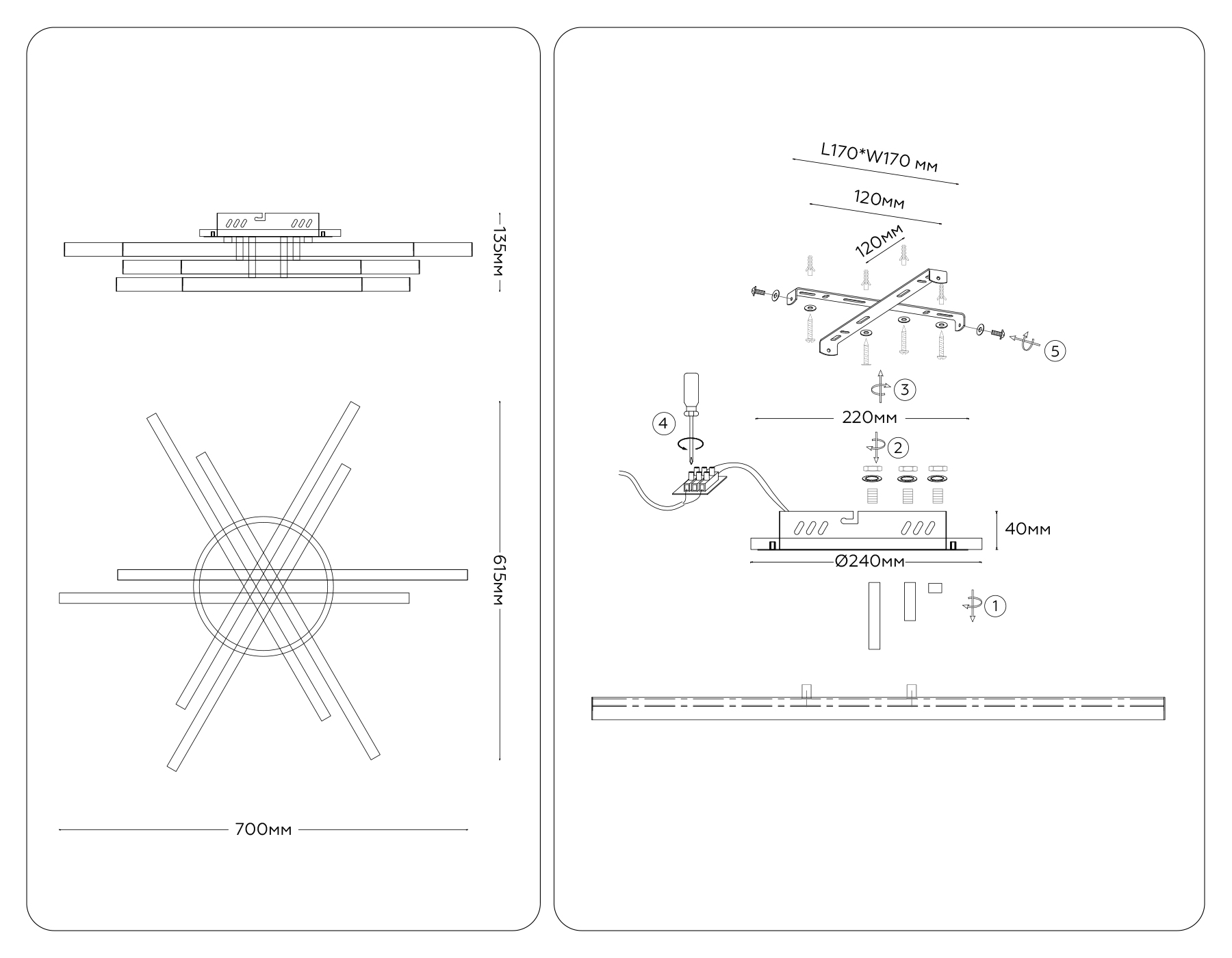 Крепежная планка: 170 мм