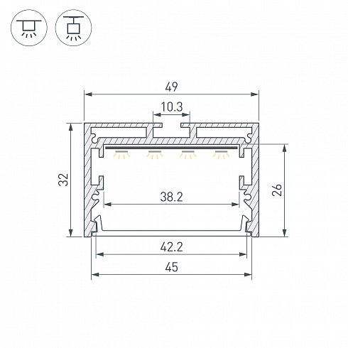 | Ширина световой линии | 45 мм |