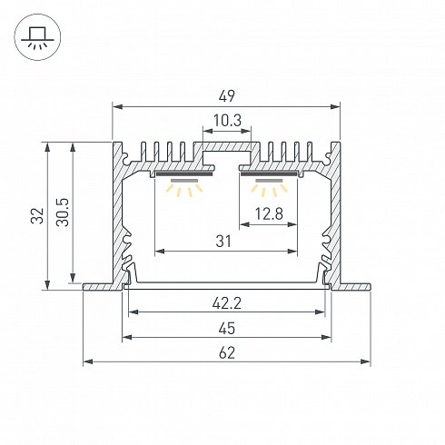 | Глубина установки источника света | 25 мм |