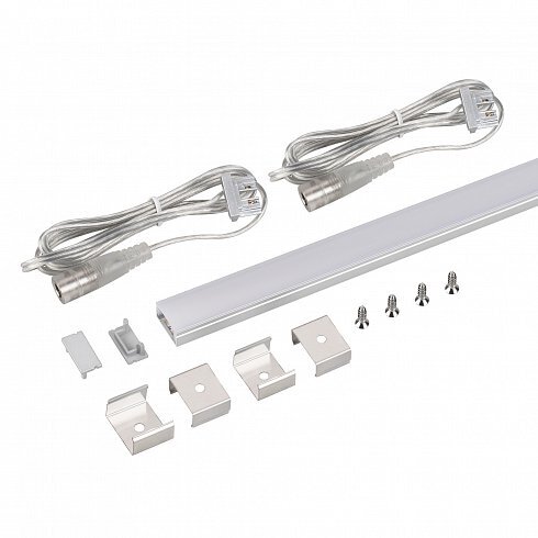 Набор для светодиодной подсветки ARL-KIT-SLIM с предустановленной светодиодной лентой. В комплект входят: алюминиевый анодированный профиль 2000 мм, матовый экран 2000 мм, пластиковые глухие заглушки - 2 шт., заглушки с кабелем 1 метр и разъёмом 5.5 DC Female - 2 шт., металлические держатели - 4 шт., шурупы - 4шт., светодиодная лента со свободной резкой. Габаритные размеры (L×W×H): 2000x17x8 мм. Светодиодная лента со свободной резкой, открытая IP20. Светодиоды SMD 2216, 200 шт/м (400 шт на 2 м). Цвет ДНЕВНОЙ 4000K, цветопередача CRI>90, угол 120°. Питание 24 В, мощность 14 Вт/м (28 Вт на 2 м). Минимальный отрезок - 5 мм (1 светодиод). Для создания из набора одного светильника необходимо использовать одну глухую заглушку и одну заглушку с кабелем и разъёмом 5.5DC Female. Для создания из набора одного светильника необходимо использовать одну глухую заглушку и одну заглушку с кабелем 1 метра и разъёмом 5,5DC Female. При необходимости отрежьте часть профиля необходимой длины (минимальный отрезок – 5 мм). Разрезать ленту необходимо только в обозначенных местах, отступив от края профиля на 3-5 мм строго по линии резки.