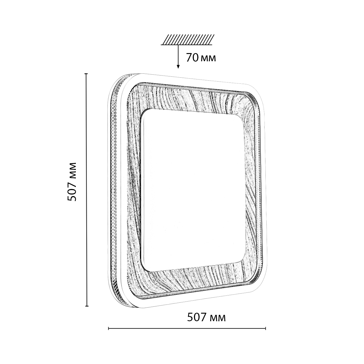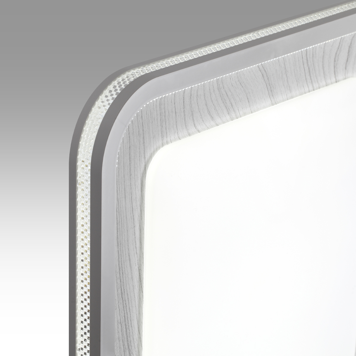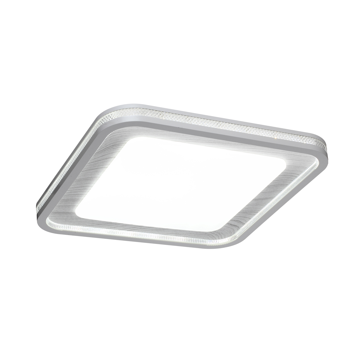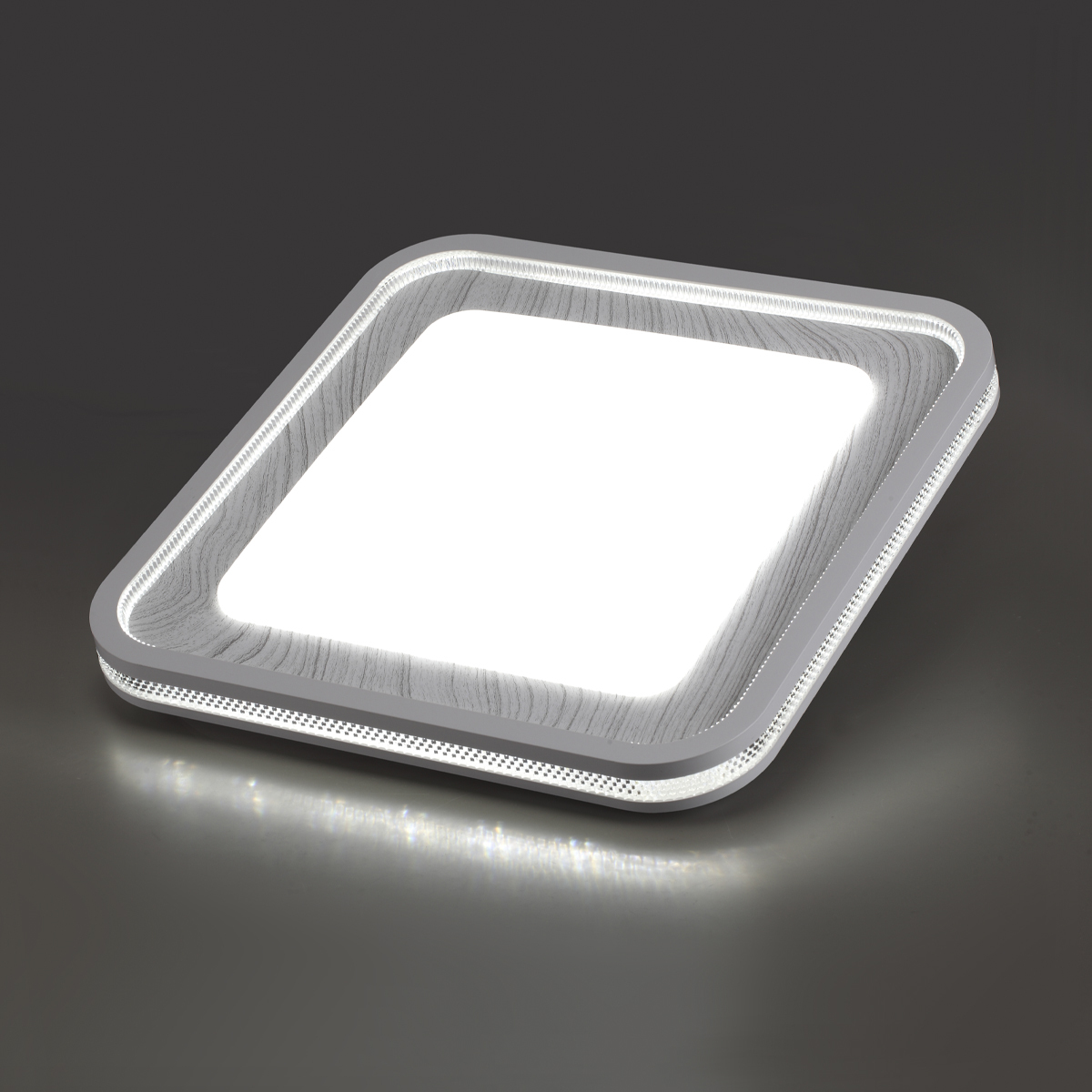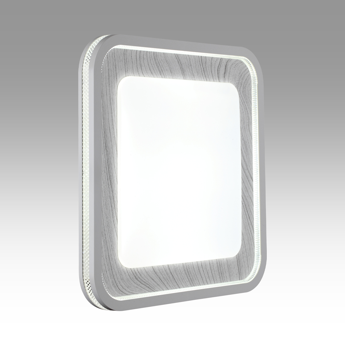 Светильник 7682/EL линии MAVI WOOD состоит из металлического основания (базы) и пластикового рассеивателя. Материал рассеивателя - высококачественный пластик марки PMMA 2.0 белого цвета с матовой поверхностью, без текстуры. Пластик обеспечивает светильнику равномерное рассеивание и хорошее светопропускание. Форма плафона: квадратная, декорирована ободом из пластика светло-серого цвета "под дерево" с прозрачной вставкой "под хрусталь". Степень защиты IP43 позволяет использовать светильник в определенных зонах влажных помещений. В комплект входит заменяемый LED модуль с линзами, мощностью 70Вт, которая соответствует лампе накаливания 610Вт. А также пульт ДУ (с креплением на стену), с помощью которого осуществляется плавное изменение цветовой температуры 3000-6000К, изменение яркости, переход в режим переключения теплого/белого/холодного/ночного света. Светильник имеет функцию "память".