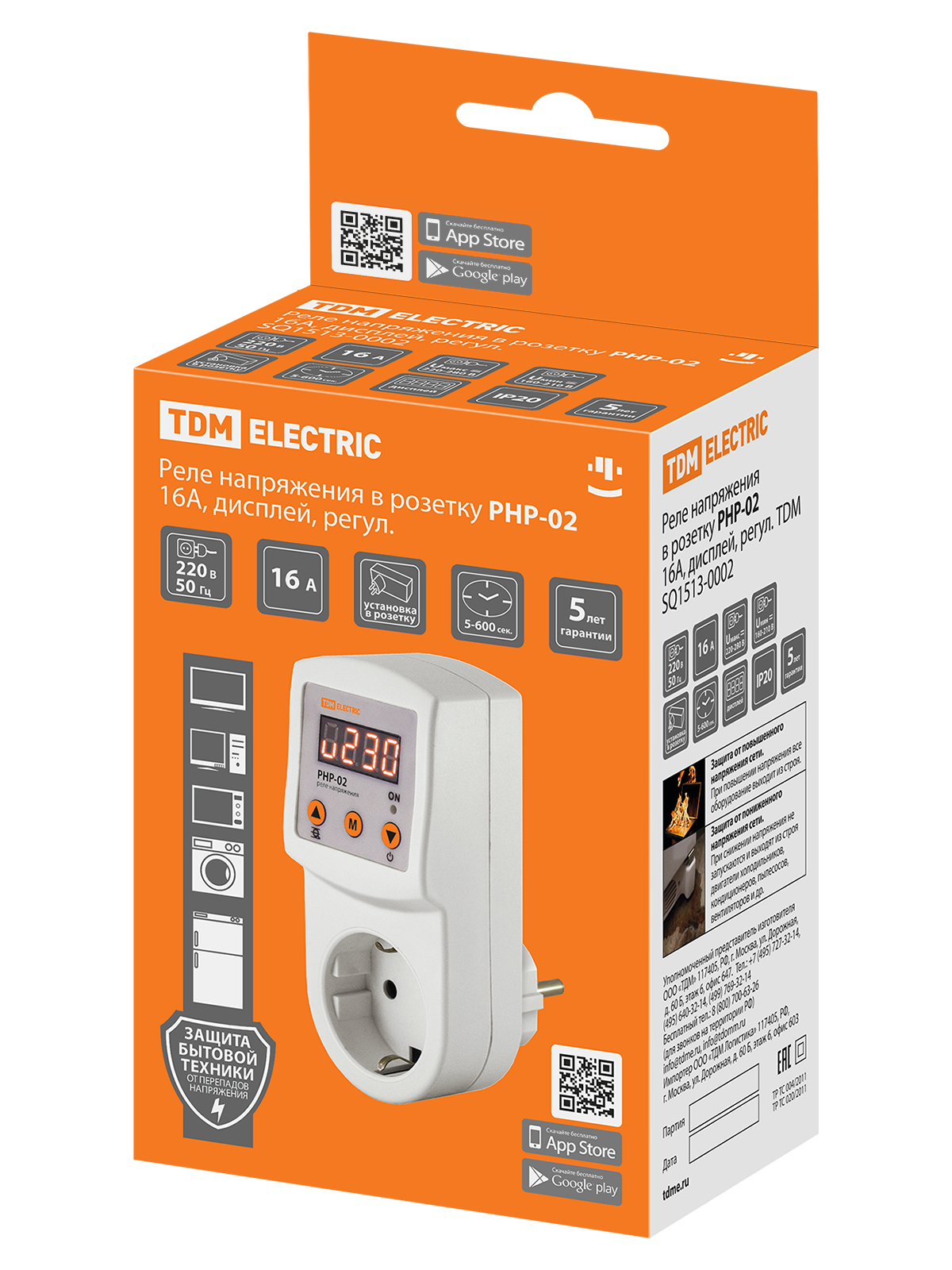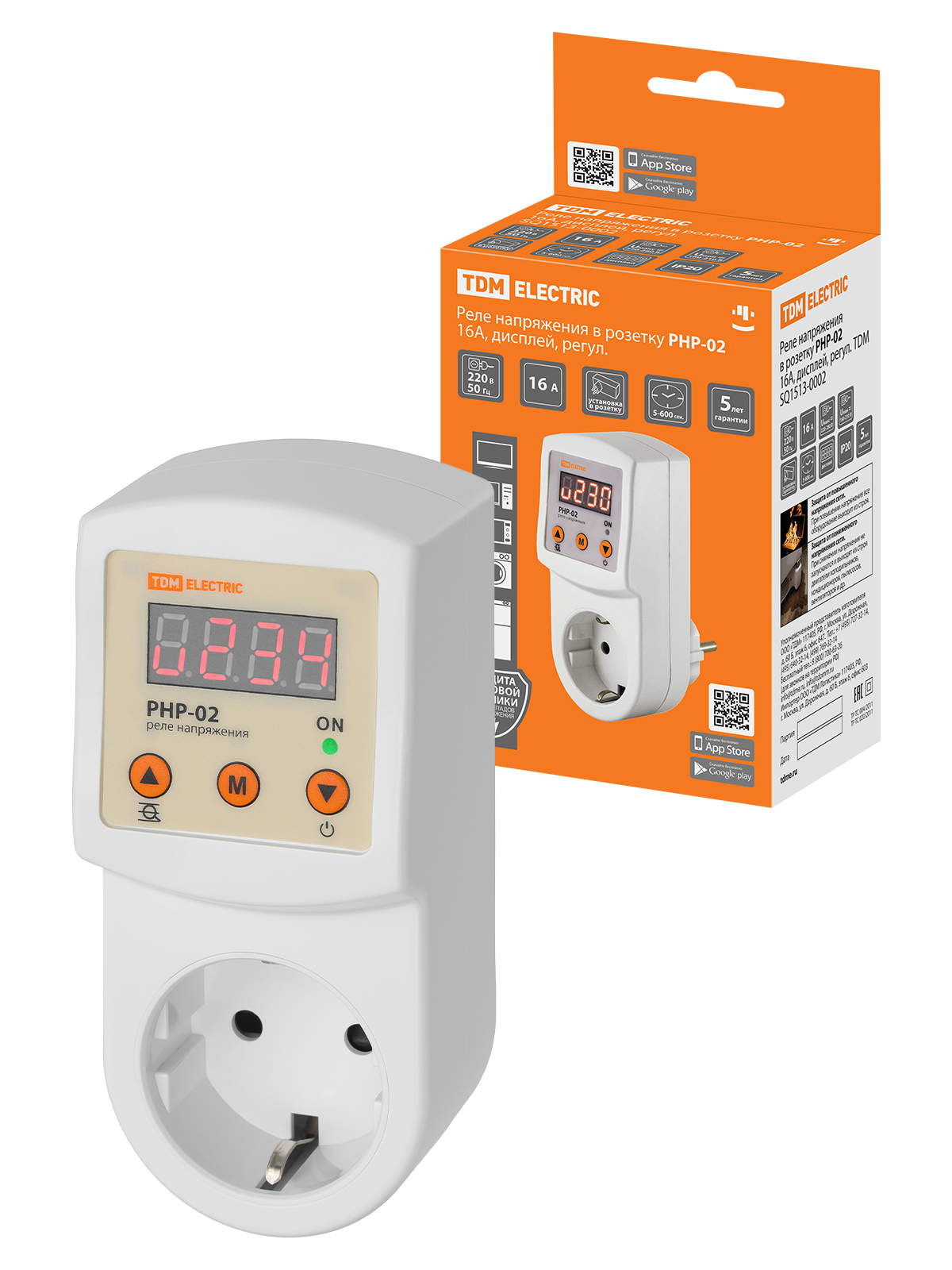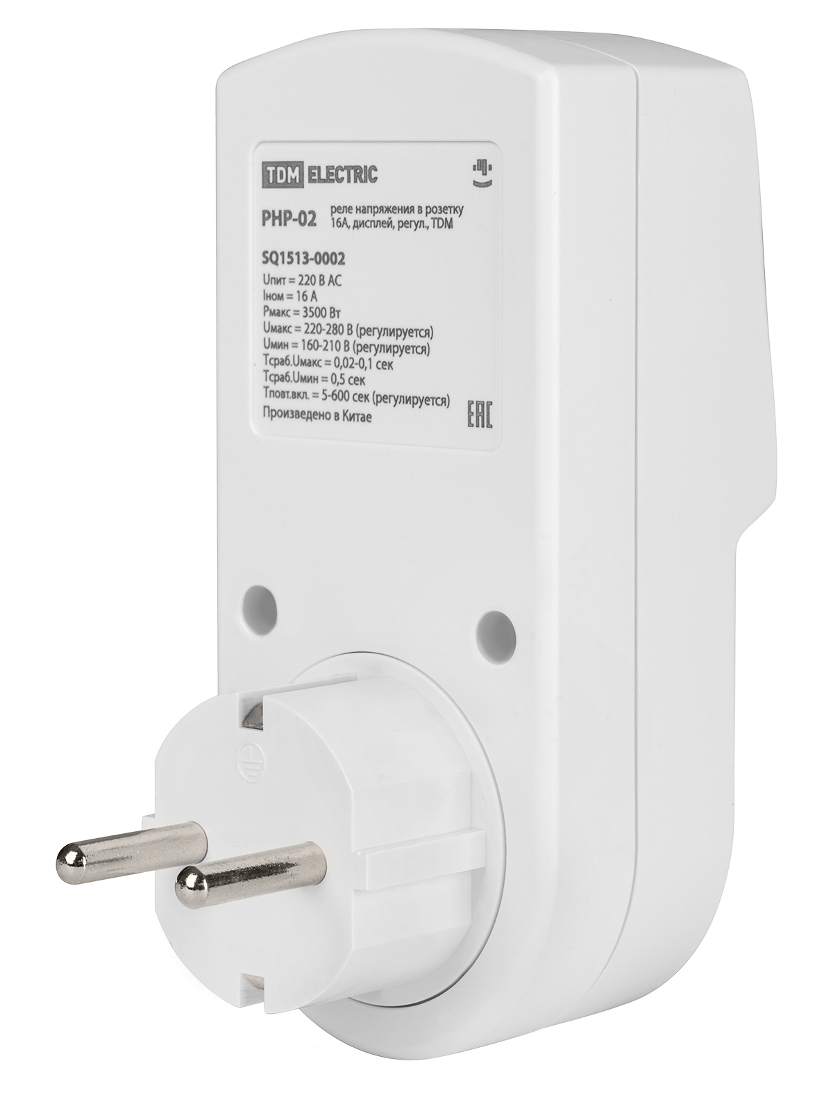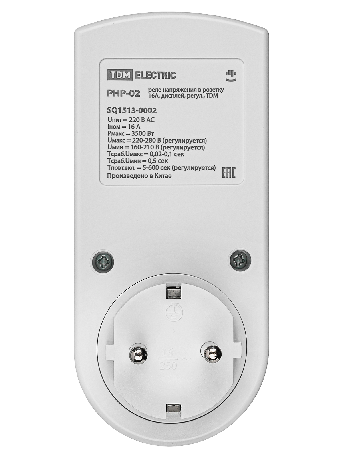 Реле напряжения РНР-02 от бренда TDM защитит ваши бытовые приборы от перепадов электросети, гарантируя безопасную работу техники благодаря регулировке пределов допустимого напряжения (от 100 до 280 В) и автоматическому отключению при выходе за эти пределы. Наглядный цифровой экран отображает текущее напряжение, а максимальная нагрузка в 16 А позволяет подключать мощные устройства. Удобное компактное исполнение подходит для установки непосредственно в розетку.