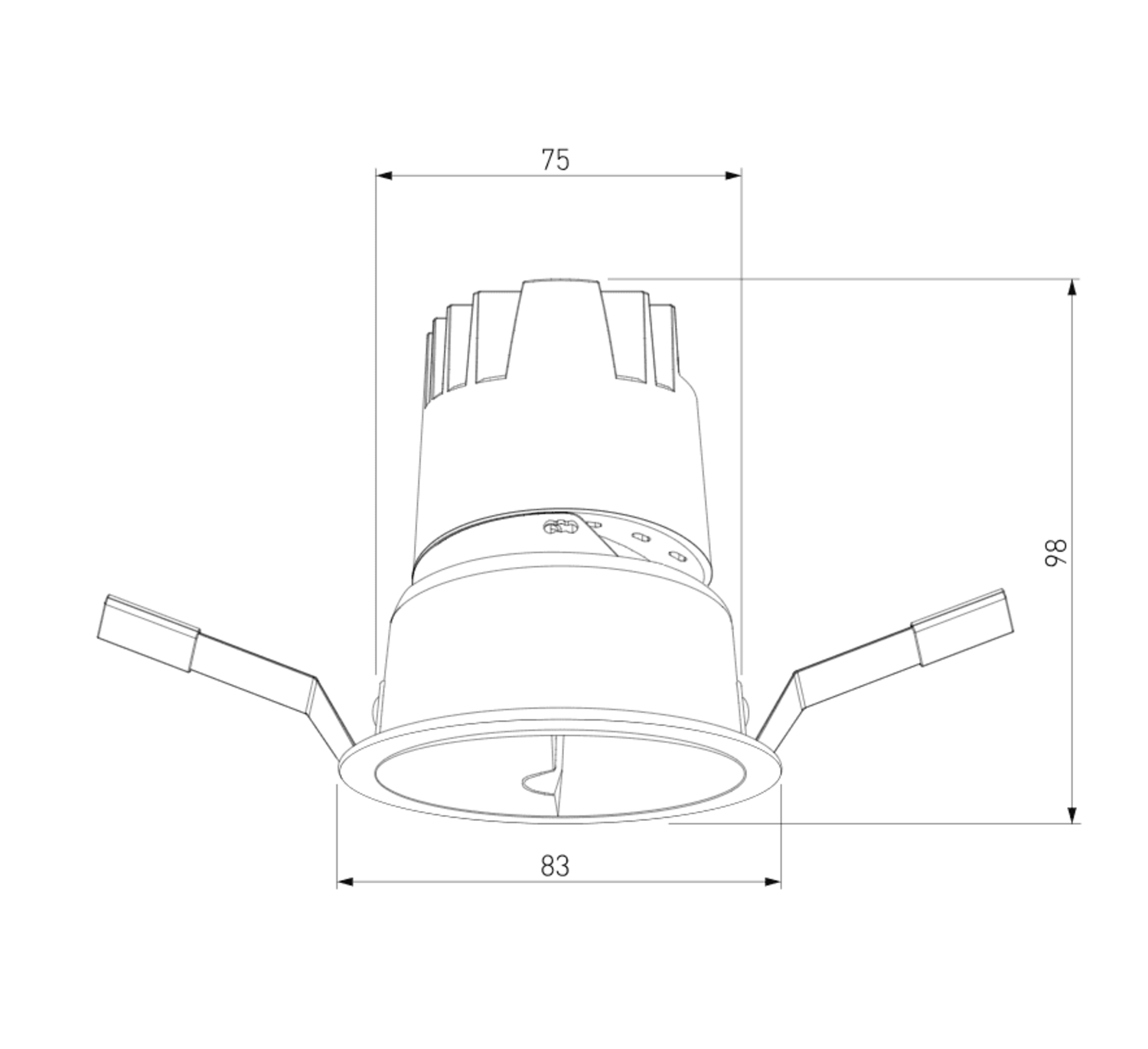 Рекомендованный размер монтажного отверстия: 75 мм