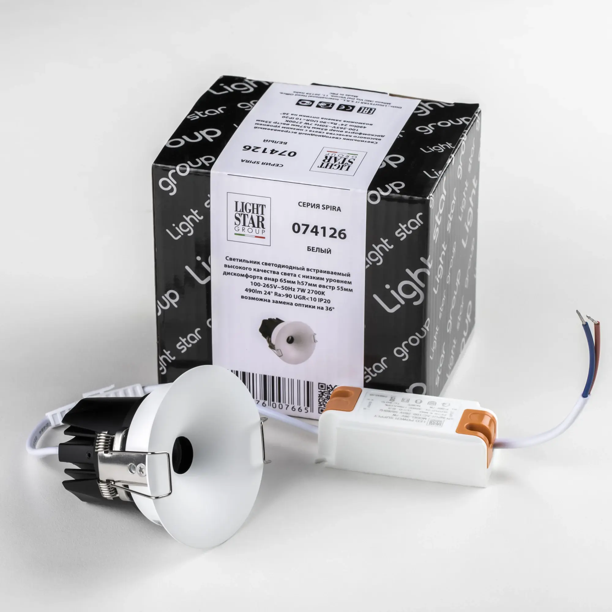Светильник светодиодный встраиваемый высокого качества света с низким уровнем дискомфорта LED 7W 2700K 074126 белый Spira Lightstar