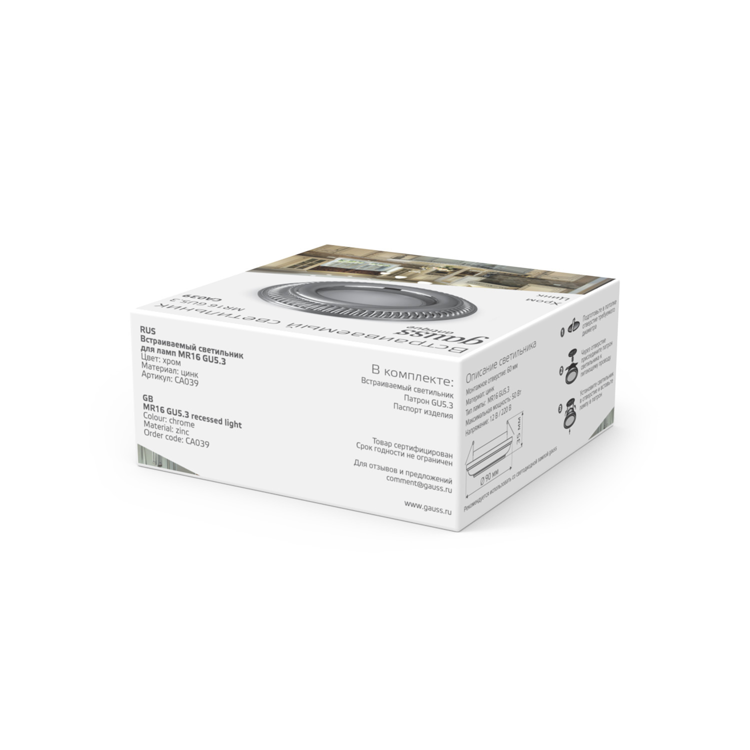 Встраиваемый точечный светильник 1*Gu5.3 CA039 хром Antique Gauss
