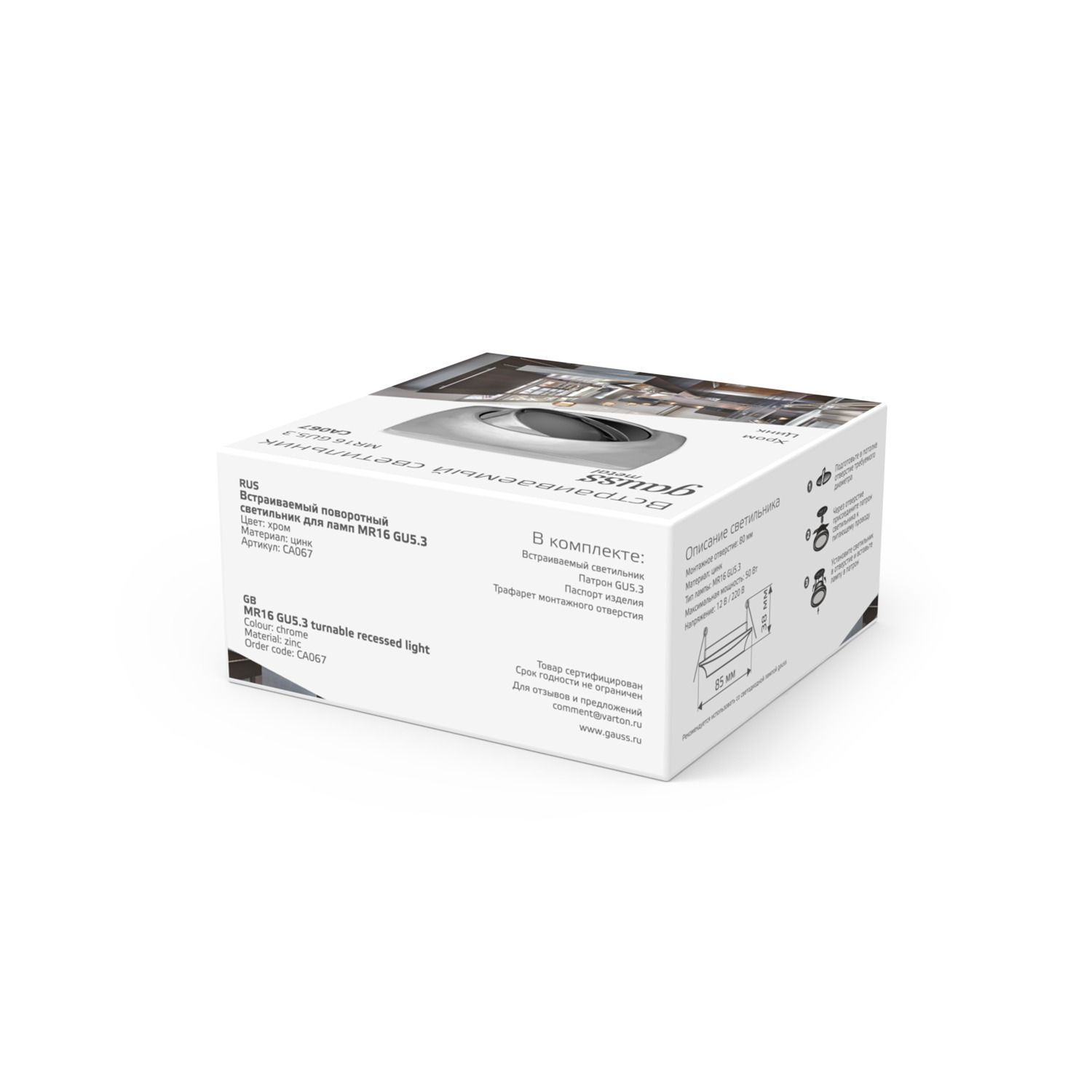 Встраиваемый поворотный точечный светильник 1*Gu5.3 CA067 хром Metal Exclusive Gauss
