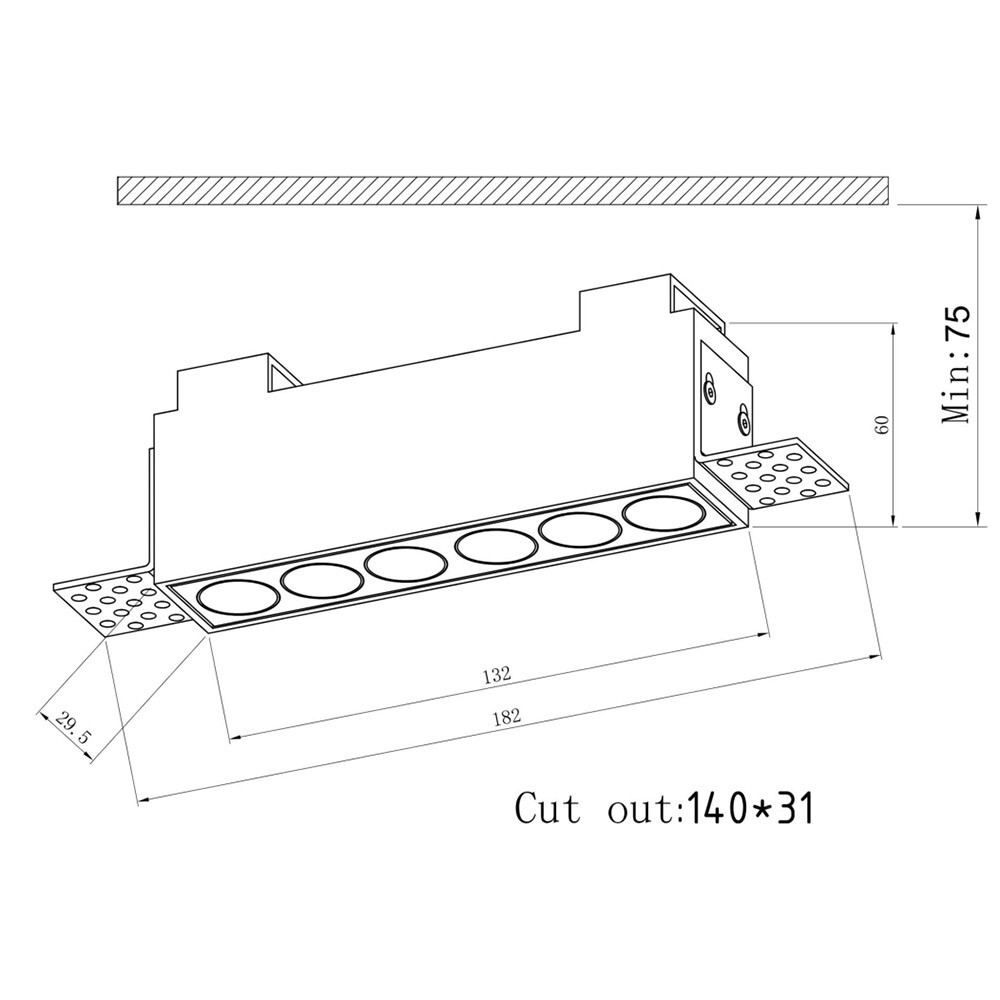 | Размер врезного отверстия | 140х31 мм |