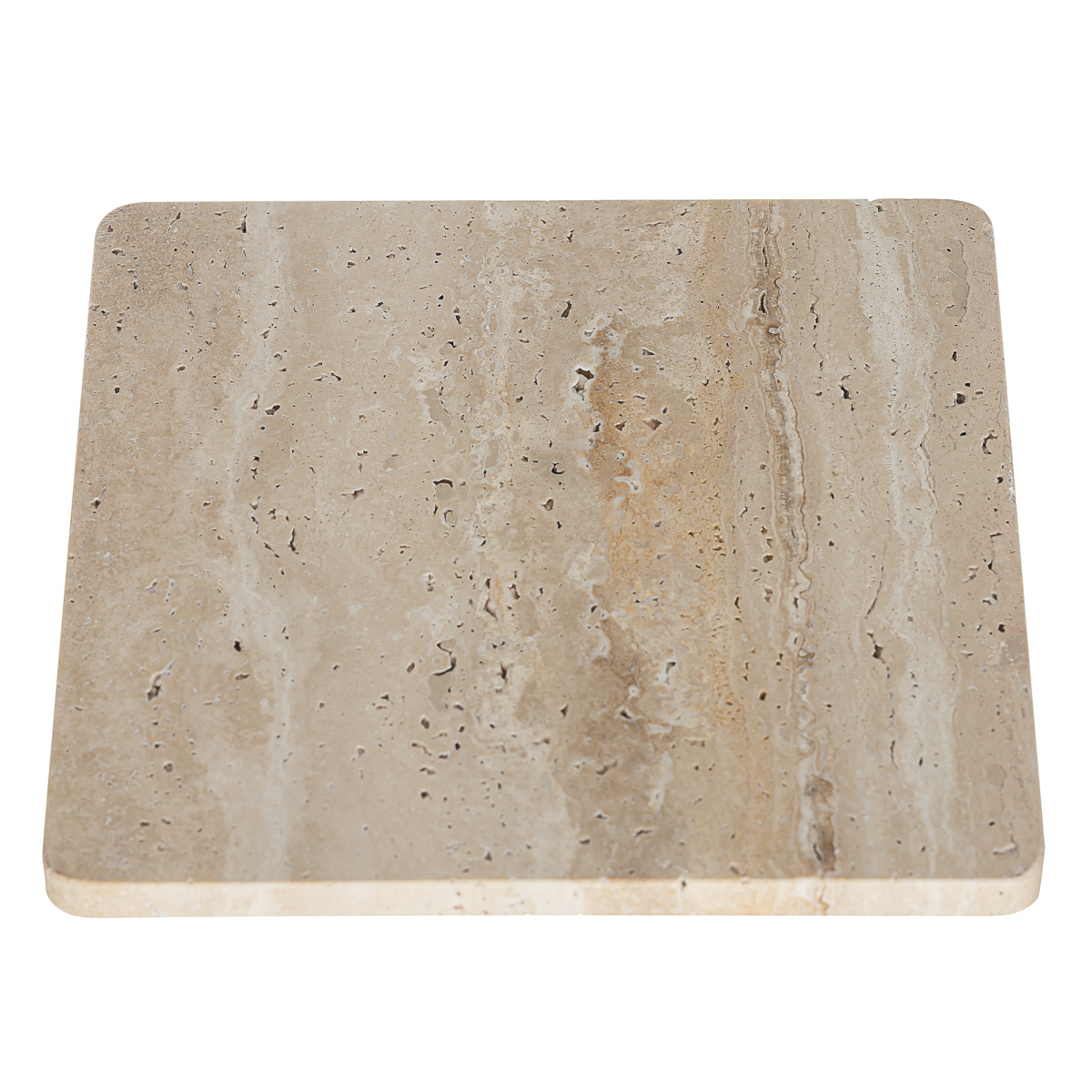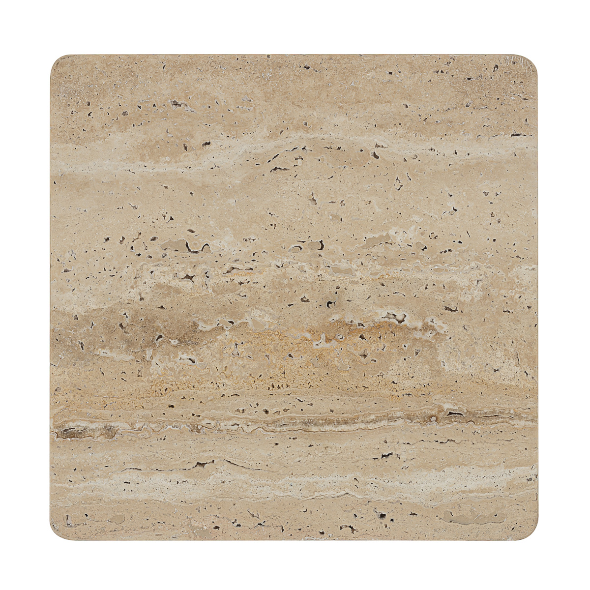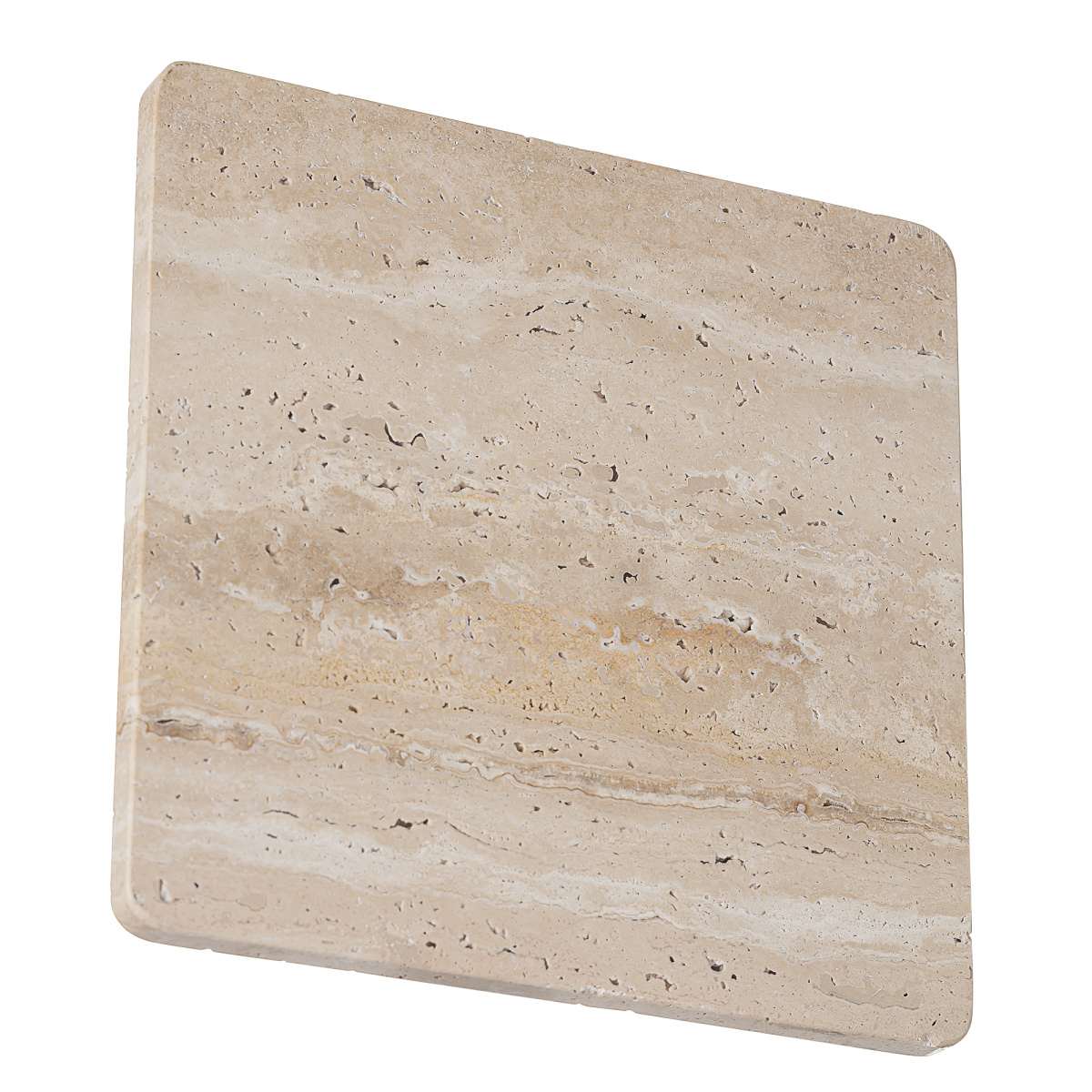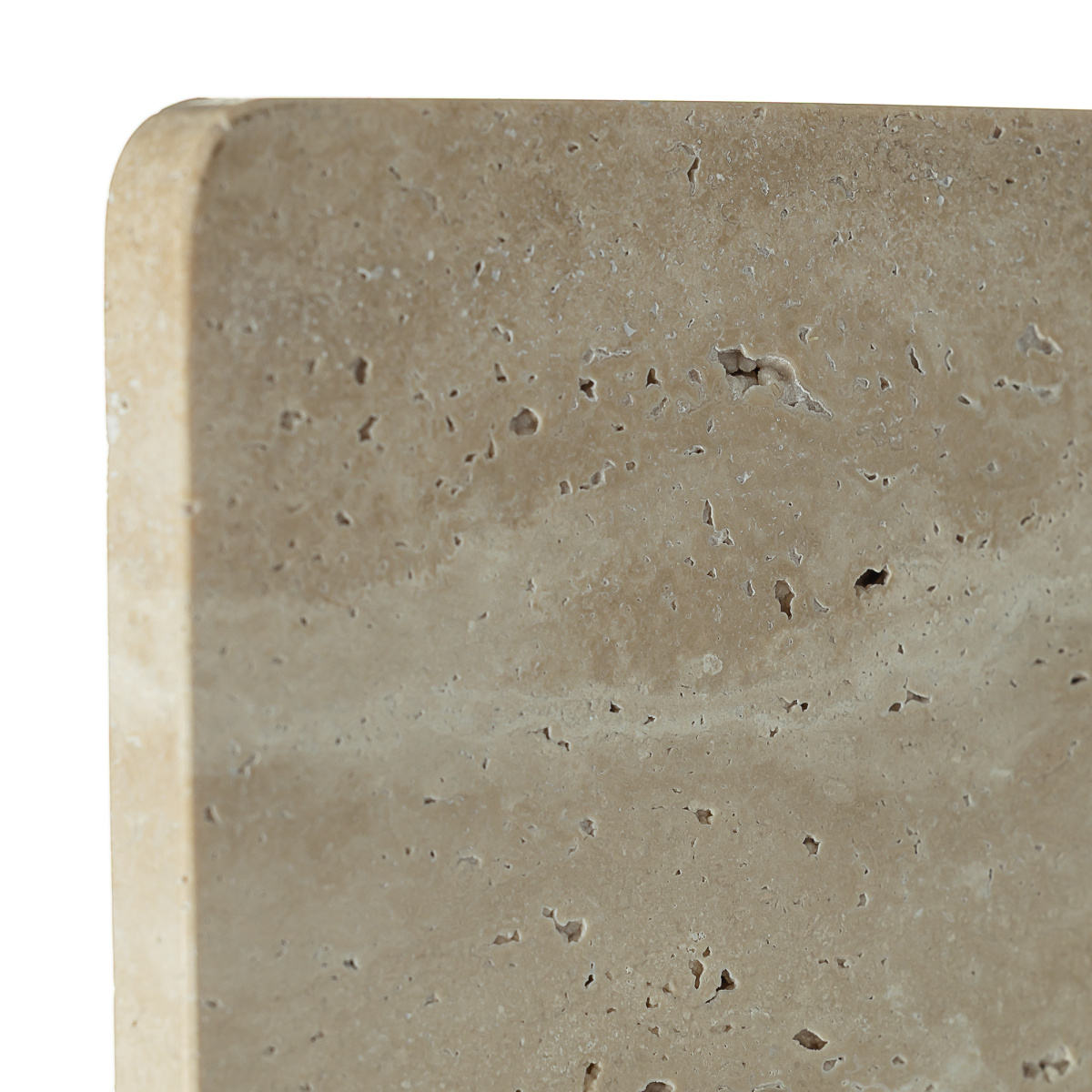 Арматура металлическая, корпус — квадратной формы со скругленными углами, из натурального камня травертина бежевого оттенка. Светодиоды с цветовой температурой 3000К создают изящный рисунок света, наполняя пространство тёплым, уютным сиянием. Мощность светильника составляет 12Вт.