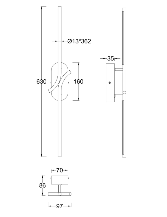 - Длина основания: 160 мм