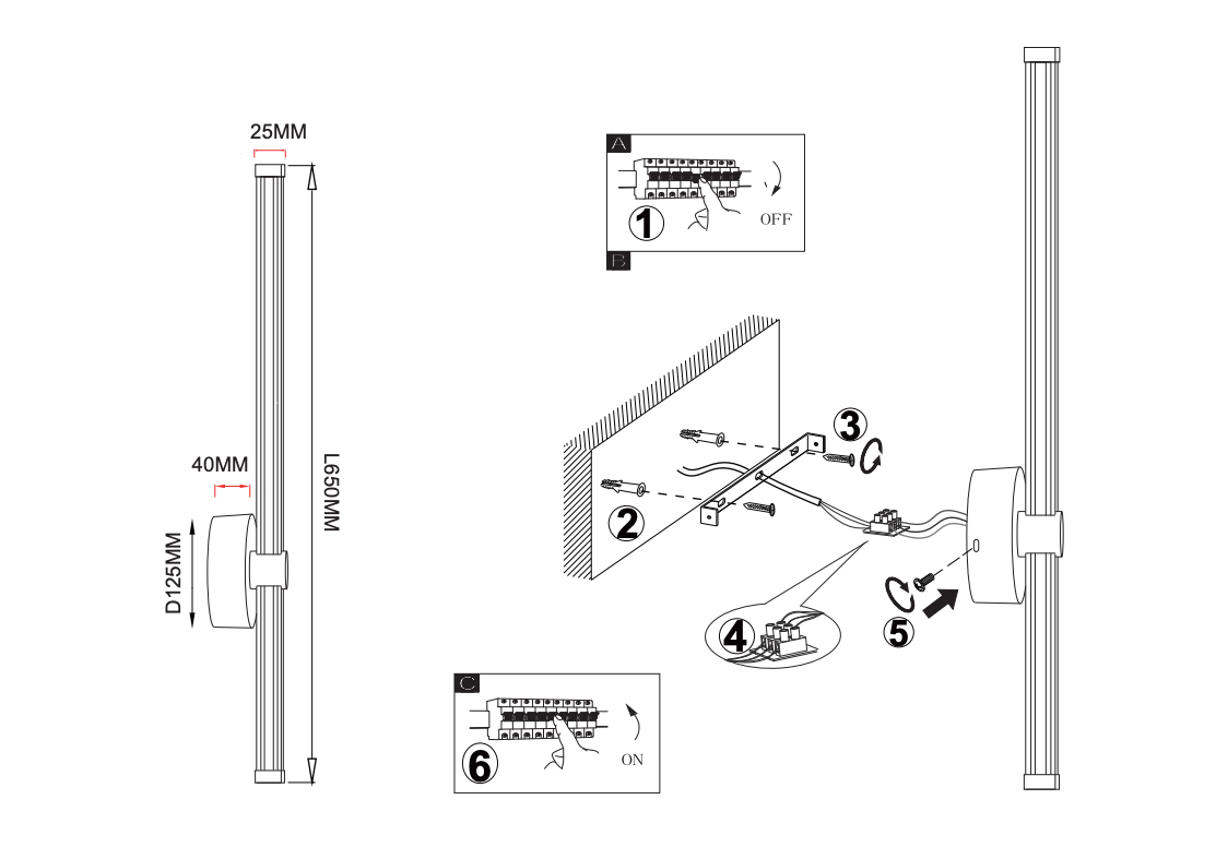 - Высота светильника, мм: 650