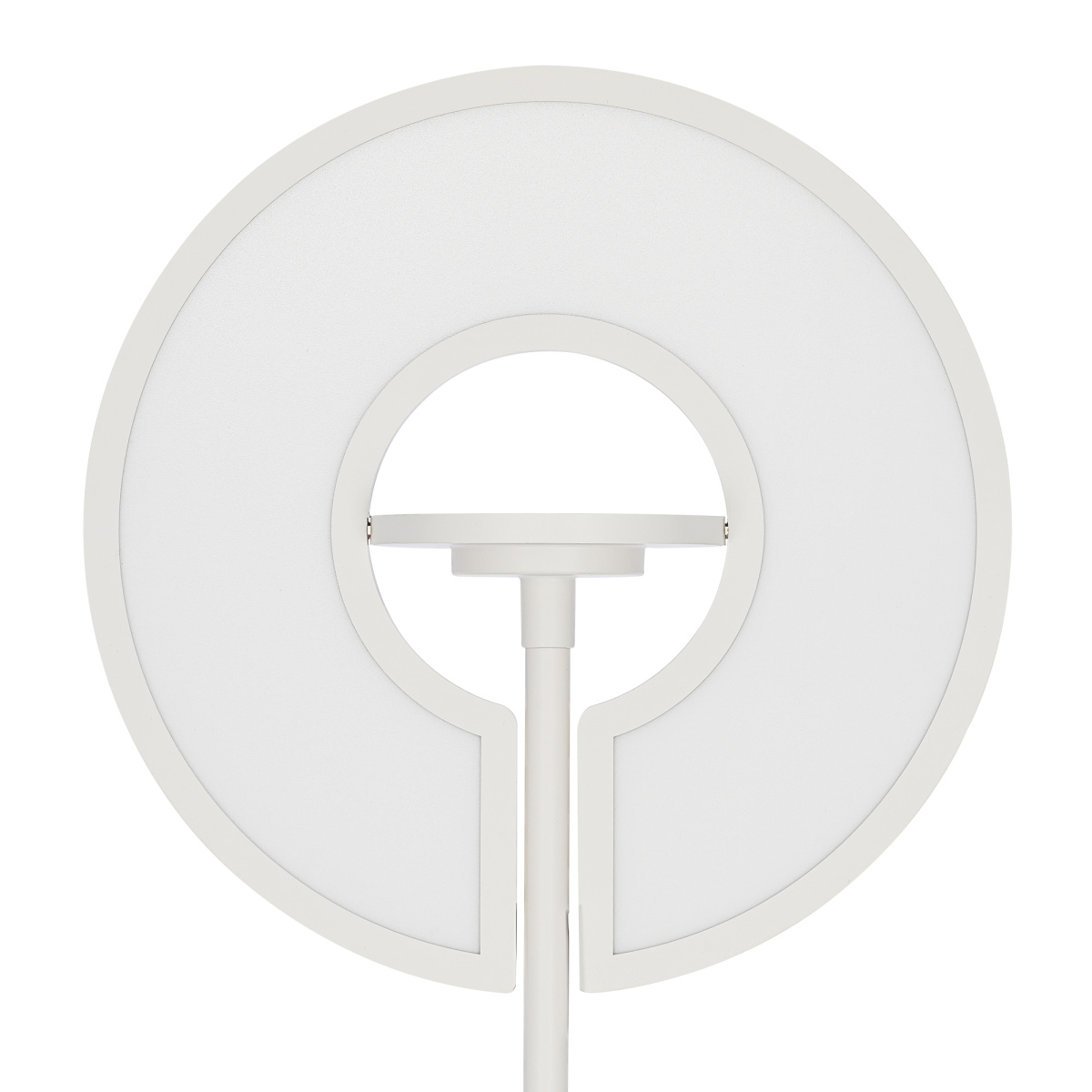 Основание и стойка торшера — из металла, окрашенного белой матовой краской. Рассеиватель — из специализированного оптического полимера, основной модуль имеет поворотную конструкцию. При этом основной свет обеспечивает равномерное, комфортное для глаз освещение без мерцания и пульсаций, а дополнительный RGB‑модуль открывает безграничные возможности для экспериментов с цветом. Мощность основного модуля — 40Вт, rgb-подсветки — 6Вт.