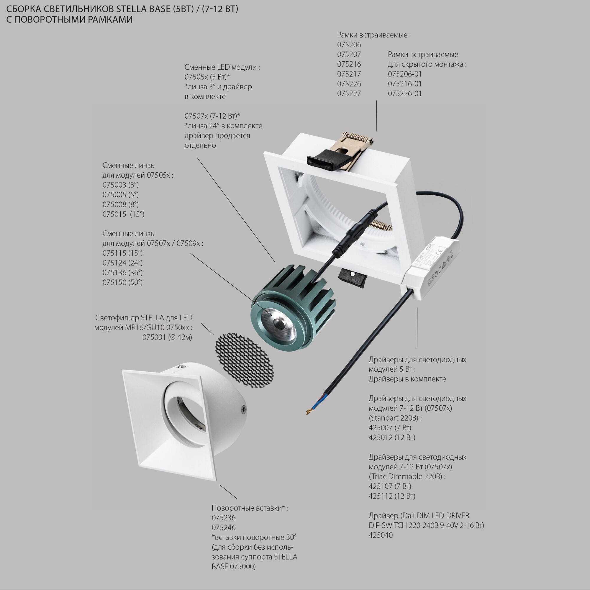 Тип монтажа: Накладной/встраиваемый/скрытый монтаж в натяжной потолок