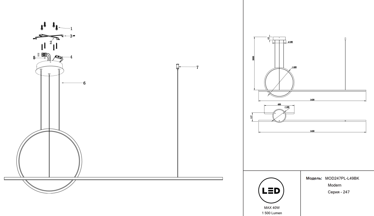 - Длина: 1430 мм