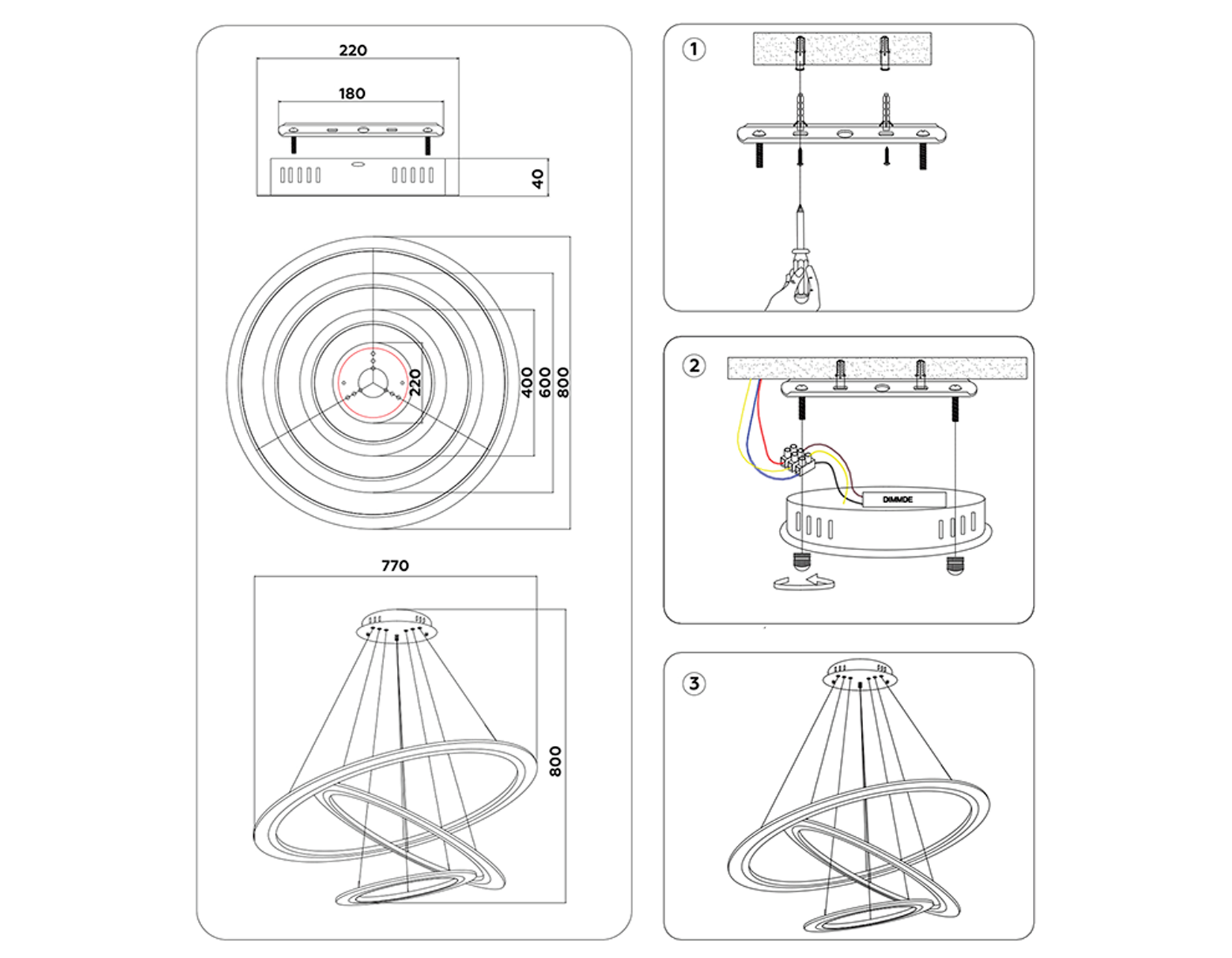 - Высота люстры с тросом, мм: 800