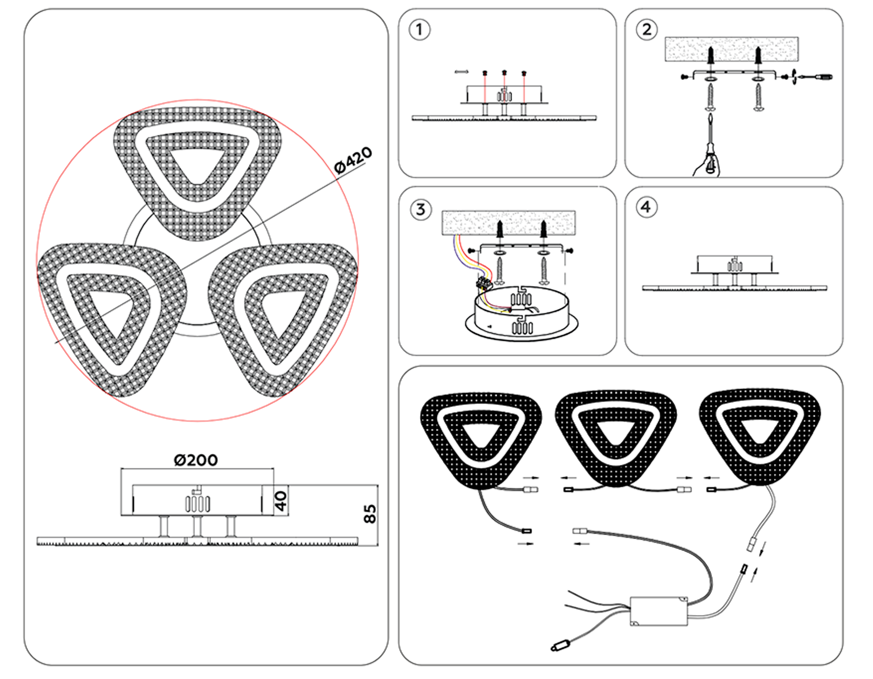 - Цветовая температура, К: 3000/4200/6400