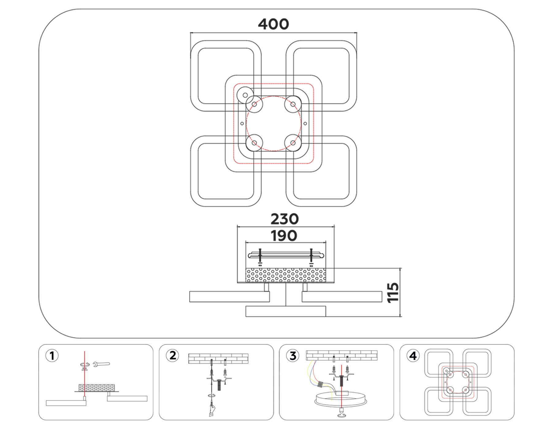 - Длина потолочной чаши, мм: 230