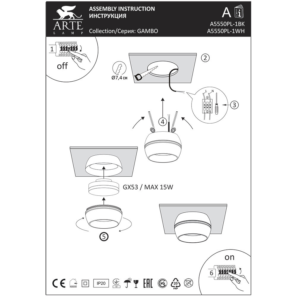 - Тип цоколя: GX53