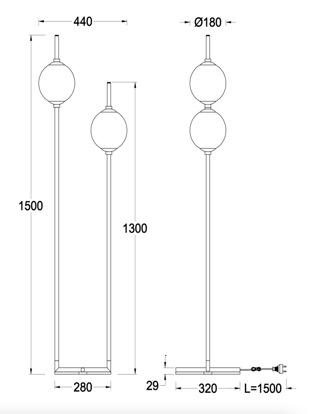 - Высота: 1500 мм