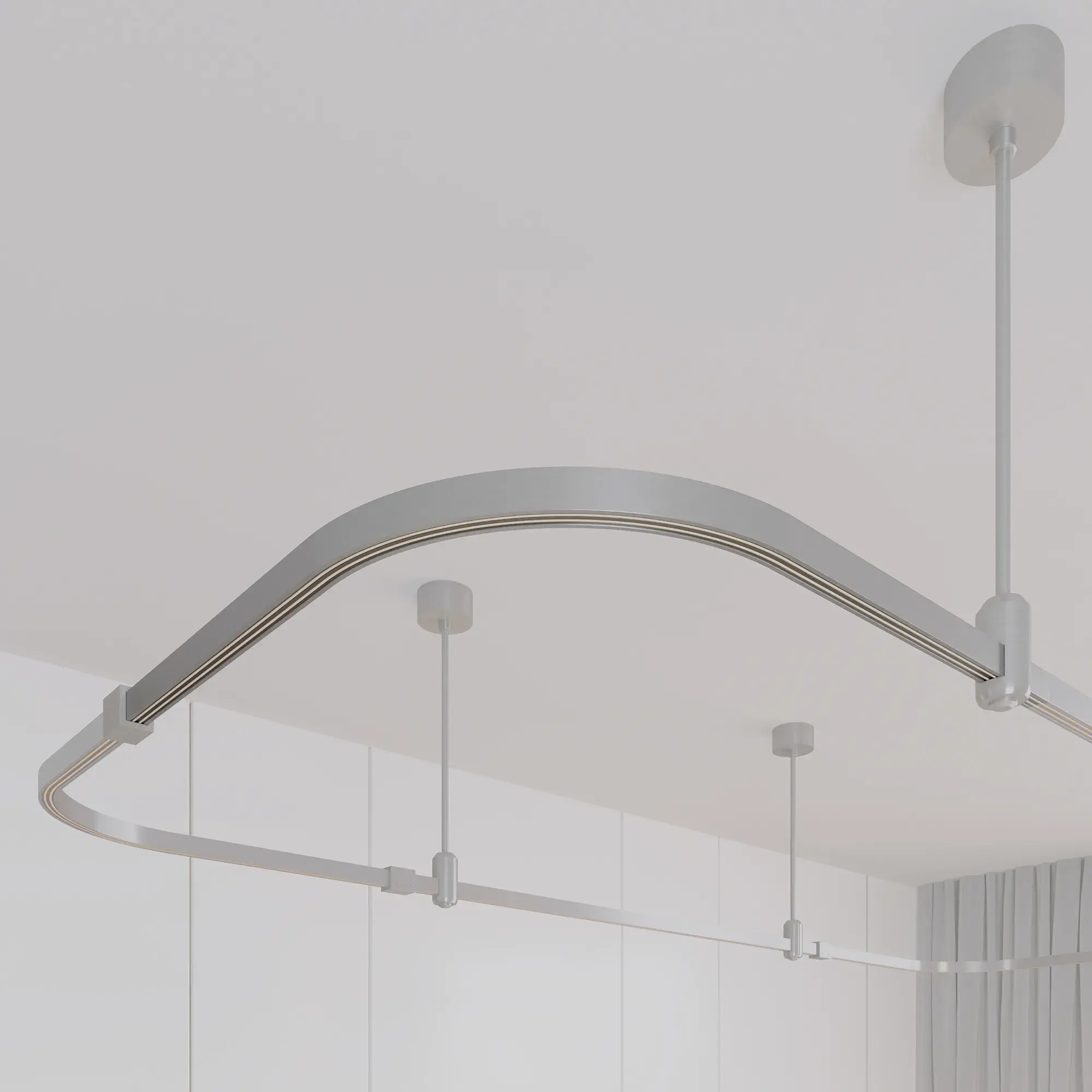 Трек TRACK-ANGLE-A-1722-500х500, мягкий угол 90°. В сочетании с аксессуарами и светильниками предназначен для создания простых и сложных (протяженных, многоуровневых) осветительных конструкций с мягкими углами. Монтируется подвесным способом. Размер: 500 x 500 x 22 мм. Шинопровод рассчитан на работу с безопасным напряжением DC48В. Изготавливается из алюминия, анодированного в цвет титан. Возможна резка в произвольном месте. Аксессуары, светильники и источники питания приобретаются отдельно.