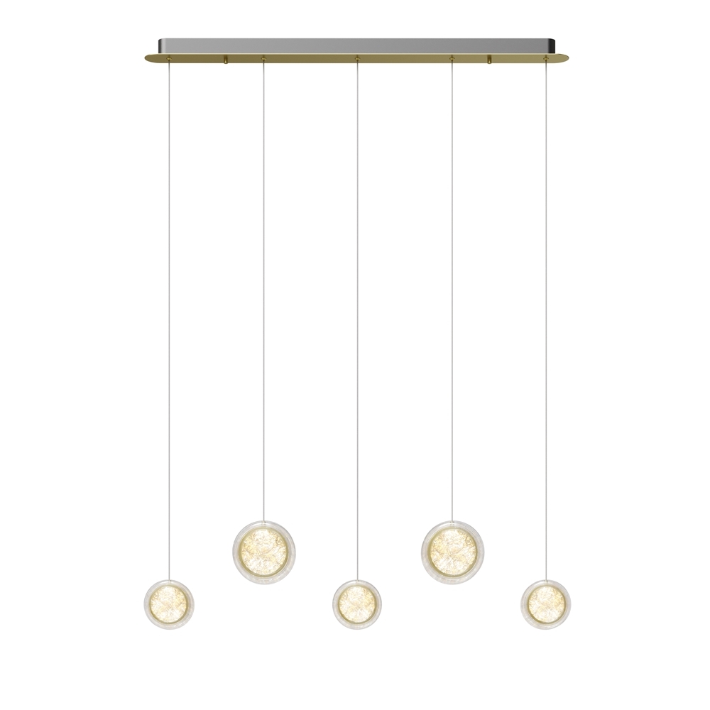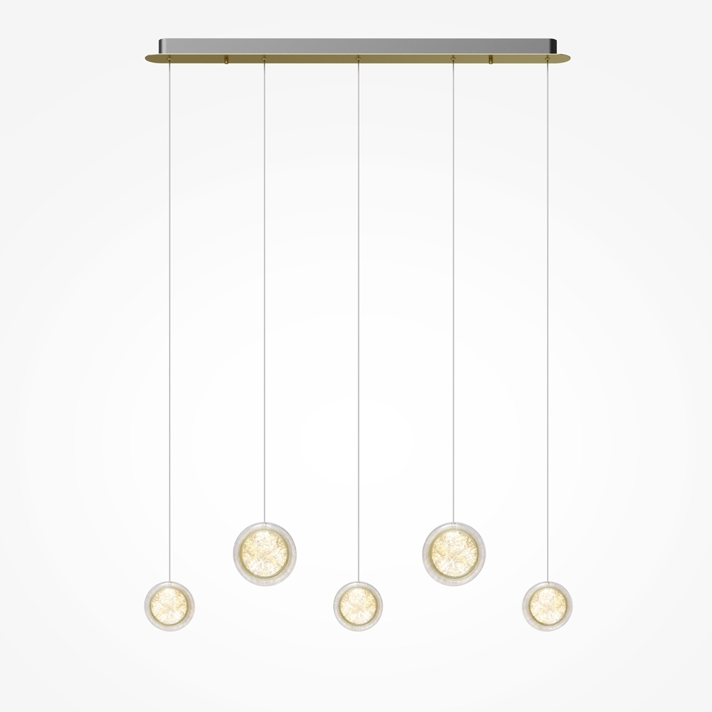 Двусторонний LED модуль обрамлен двумя плоскими плафонами из высококачественного акрила со сложным, актуальным паттерном на поверхности. Из одинарных плафонов с двумя диаметрами легко создавать композиции.